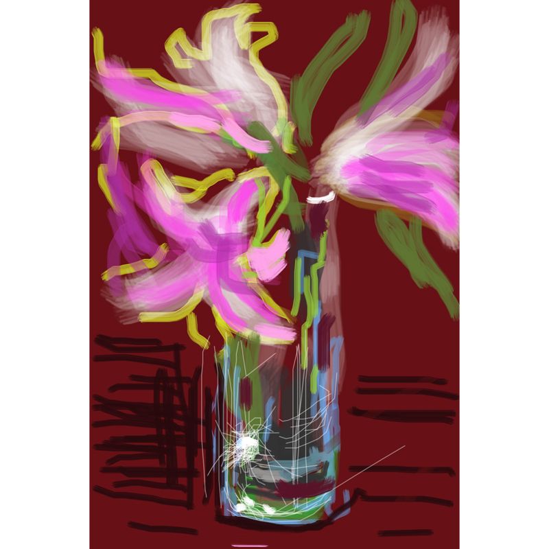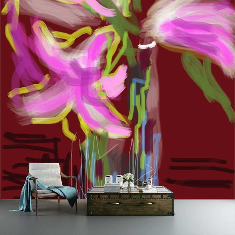 Flower Painting Lily Blossom Murals Artistic Non-Woven Fabric Wall Covering in Purple-Green
