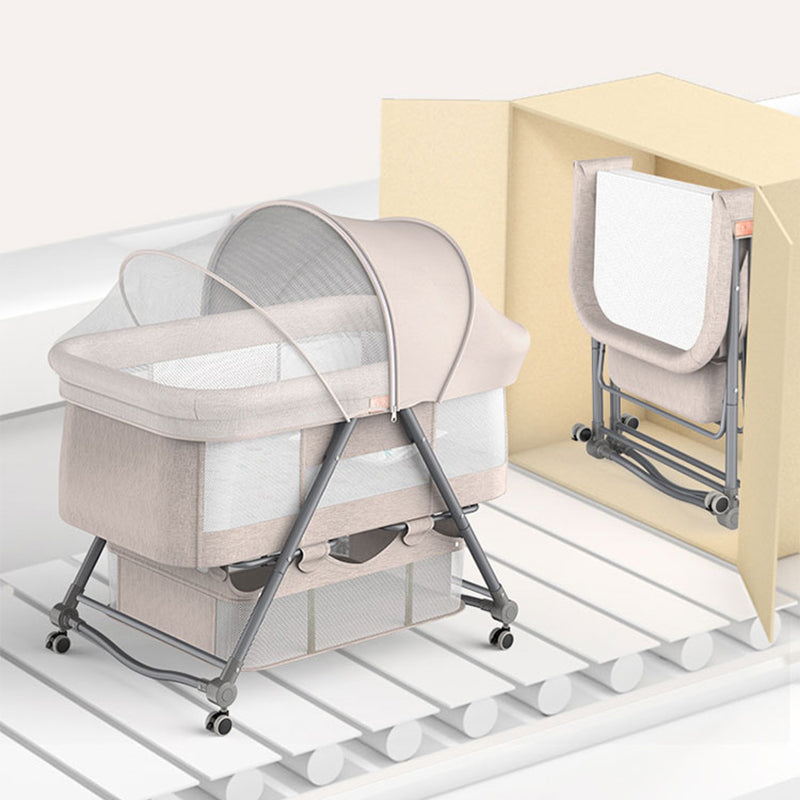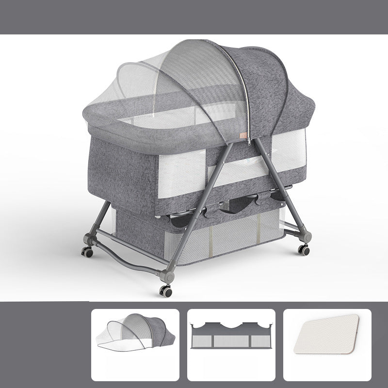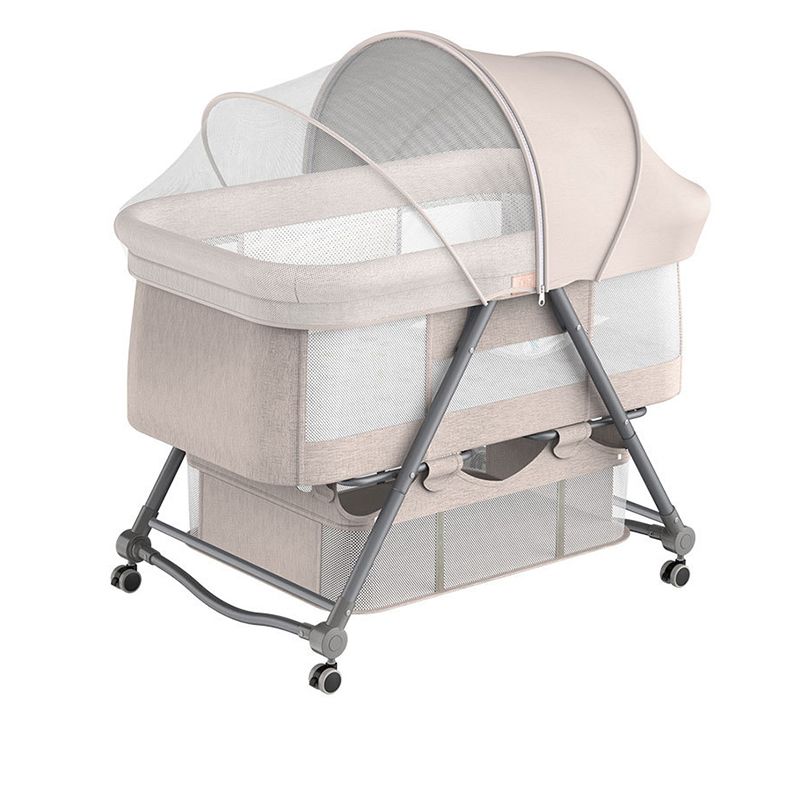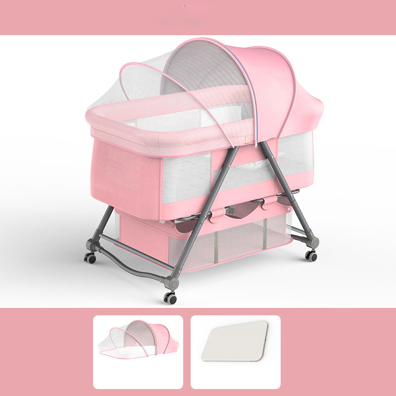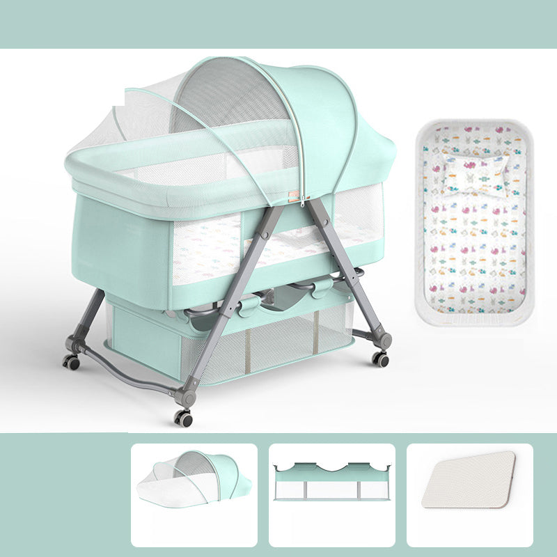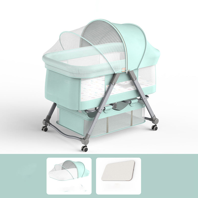 Foldable and Portable Cradle Moving Crib Cradle with Mattress and Wheel