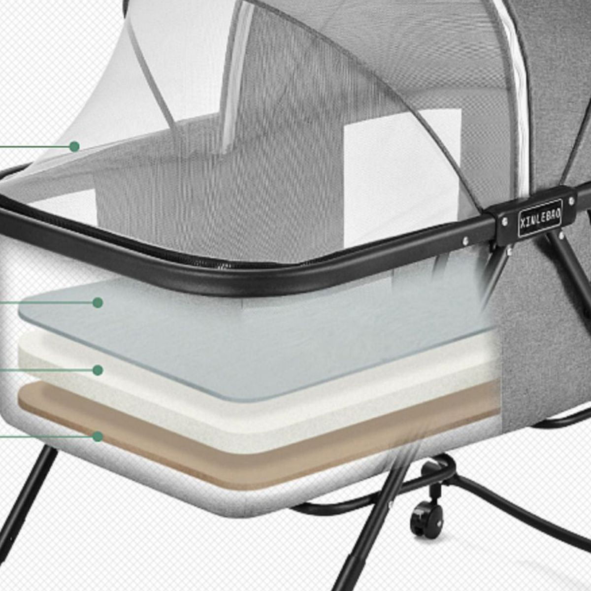 Folding and Rocking Crib Cradle Modern Metal Cradle with Mattress