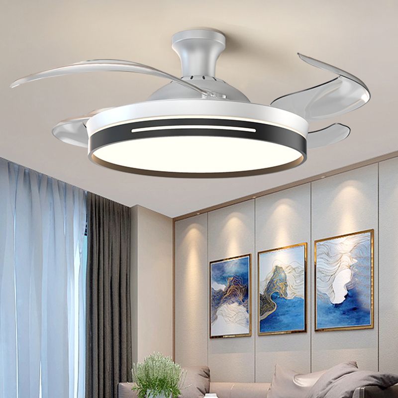 Frequency Conversion Fan Light Fixture Modern Living Room LED Semi Flush Ceiling Light