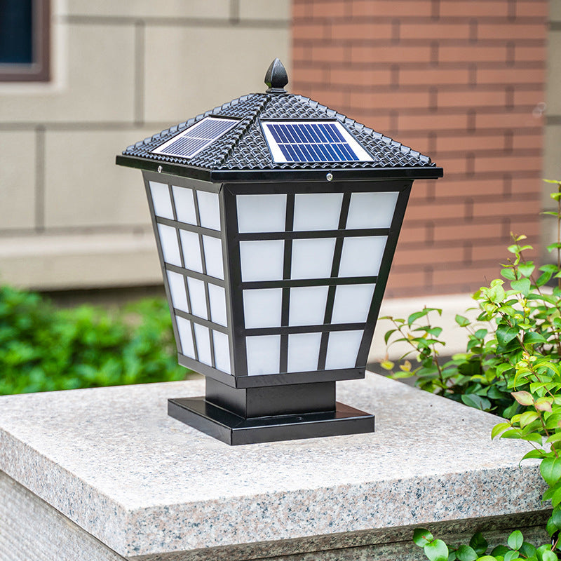 Frosted Acrylic Tapered LED Landscape Lamp Classic Courtyard Solar Pier Mount Light