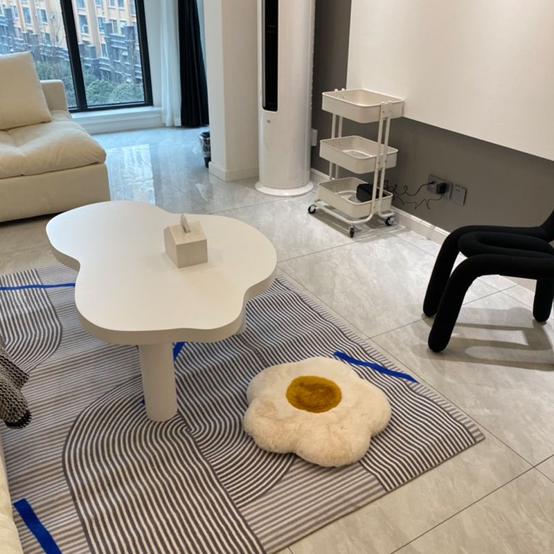 Geometric White Wood Coffee Table 3 Legs Base 1 Single Cocktail Table