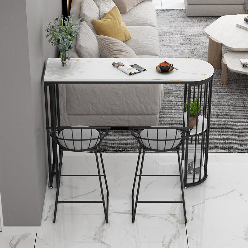 Glam Bar Dining Table Stone Top Iron Indoor Bistro Table with Shelf