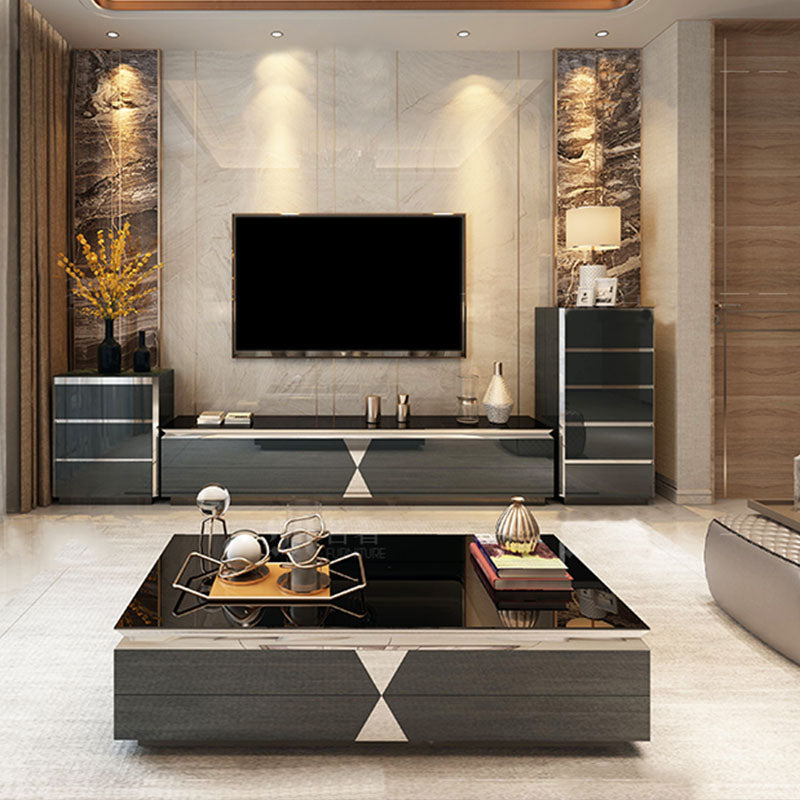 Glam Glass TV Stand Console 2 Drawers Media Console TV Stand