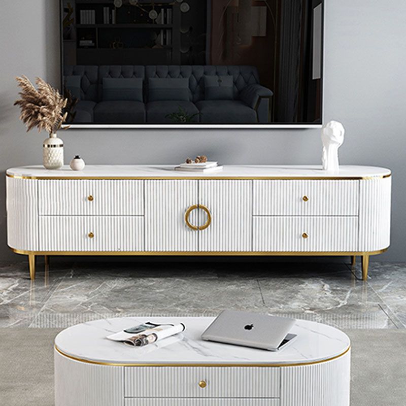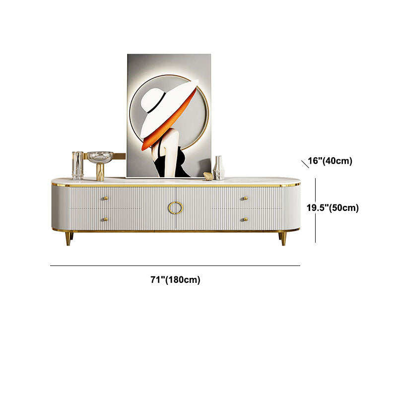Glam Gloss TV Stand White Stone TV Console with Drawers and Cabinet