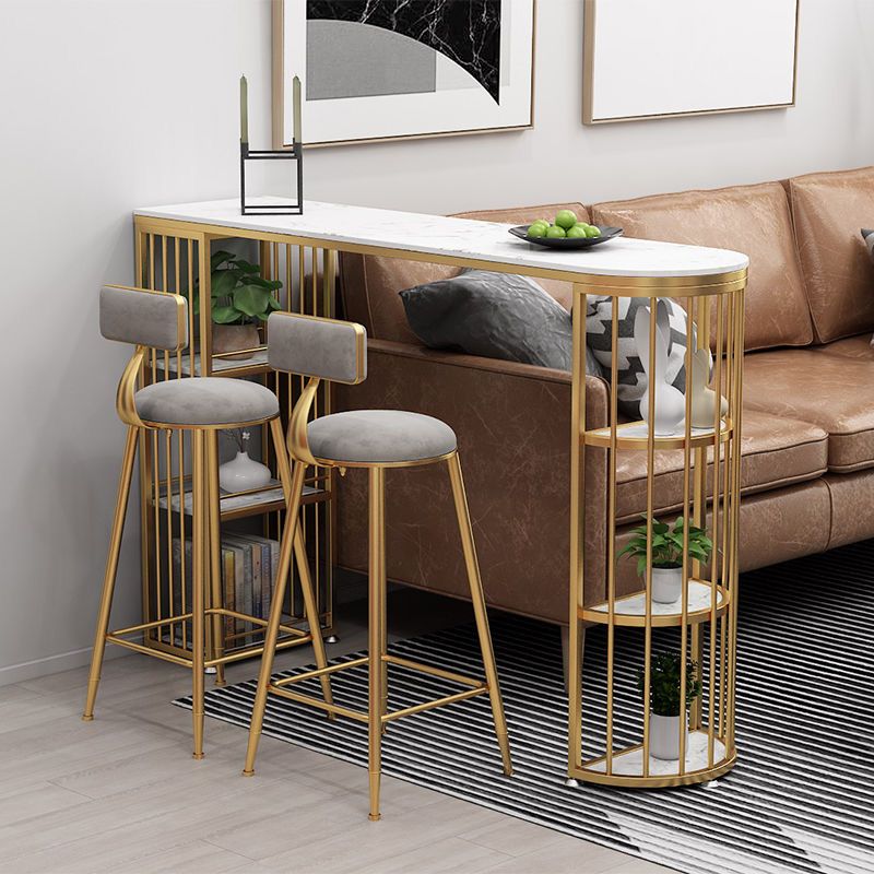 Glam Gold Iron Bar Table Faux Marble Specialty Top 41.3"H Bistro Table with Storage