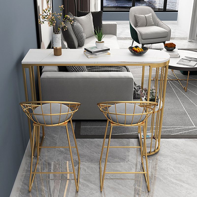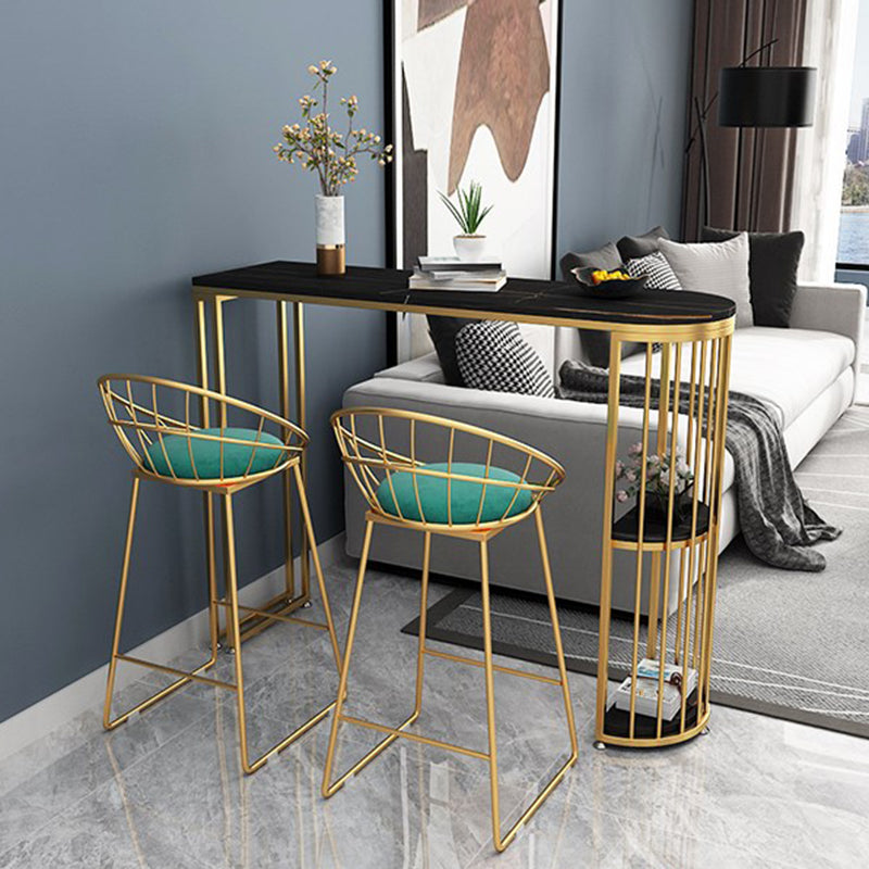 Glam Iron Bar Dining Table Stone Top Indoor Bistro Table with Shelf