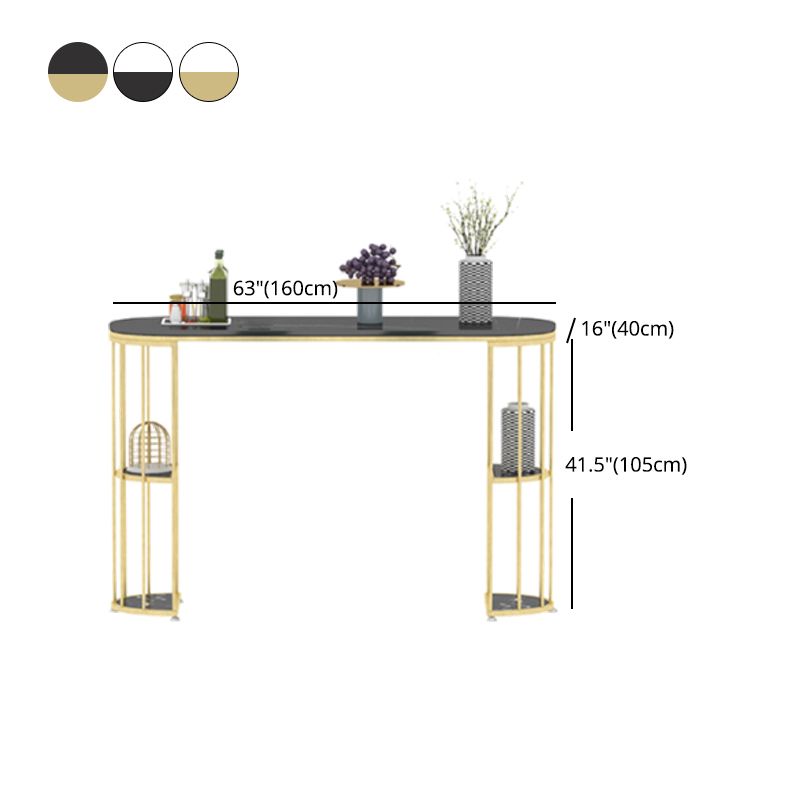 Glam Iron Bar Dining Table Stone Top Oval Indoor Bistro Table with 2-Shelf