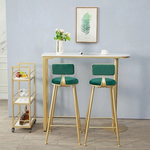 Glam Iron Bar Dining Table with White Stone Top Indoor Bistro Table Fixed Table