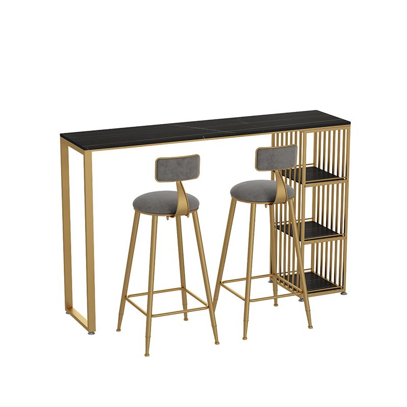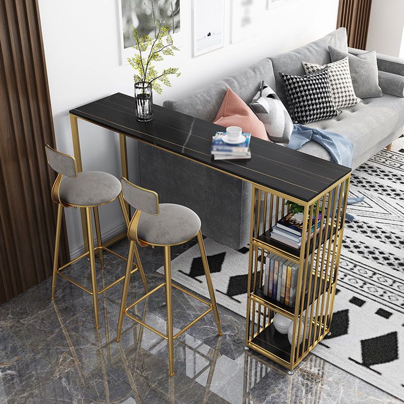 Glam Marble Bar Table with Rectangle Table Top Double Pedestal Table with 42-inch Height