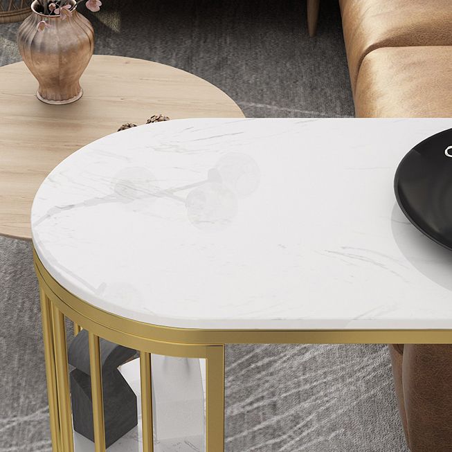 Glam Marble Pub Table with Specialty Table Top Gold Double Pedestal Table - 42" H