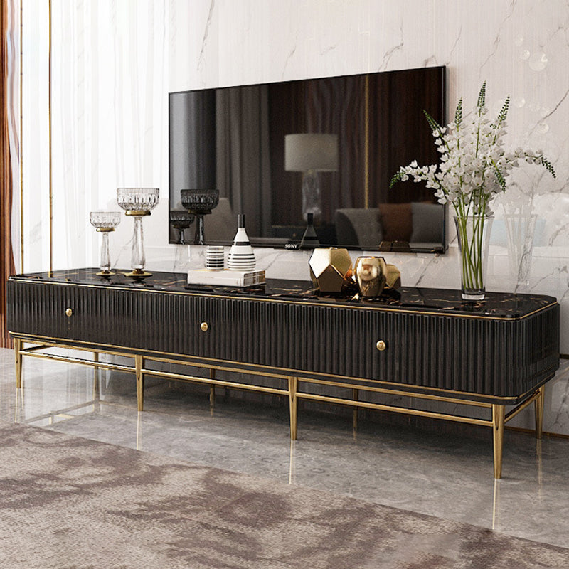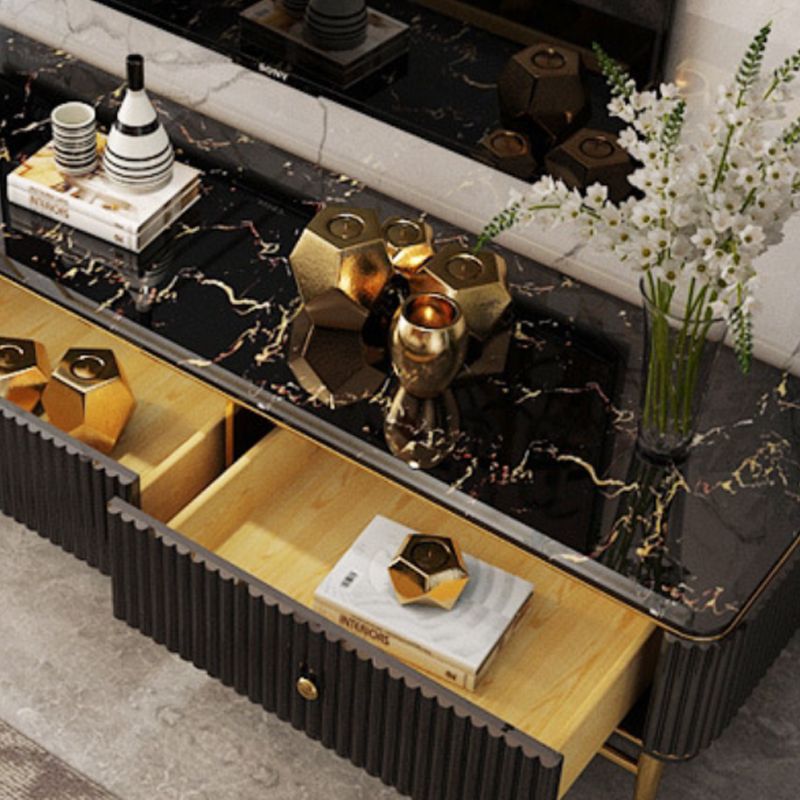 Glam Marble TV Stand Console Enclosed Storage TV Media Stand with Legs for Living Room