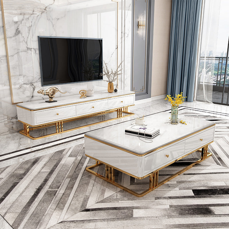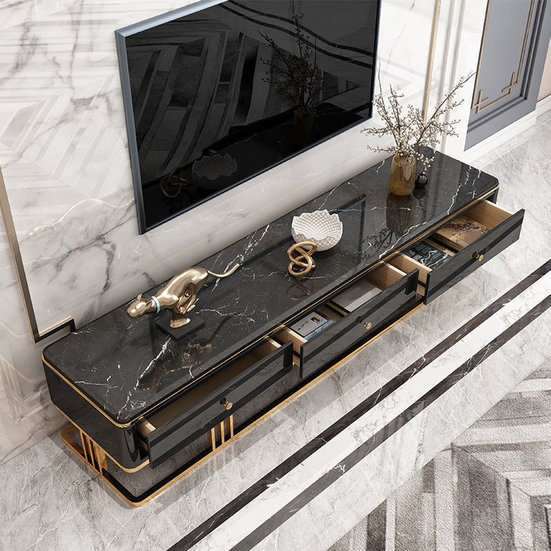 Glam Marble TV Stand Enclosed Storage TV Media Stand for Living Room