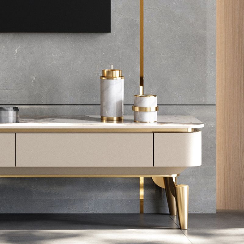 Glam Media Console TV Stand Stone TV Media Stand for Living Room