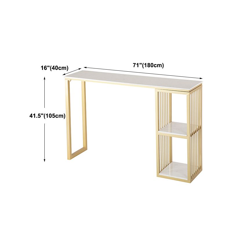 Glam Rectangle Bar Dining Table White Faux Marble Top Iron Indoor Bistro Table with Shelf