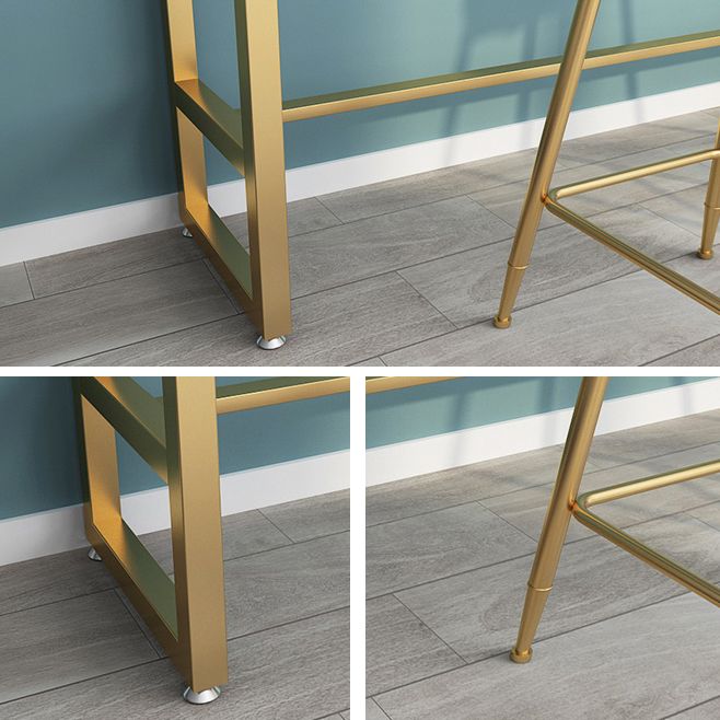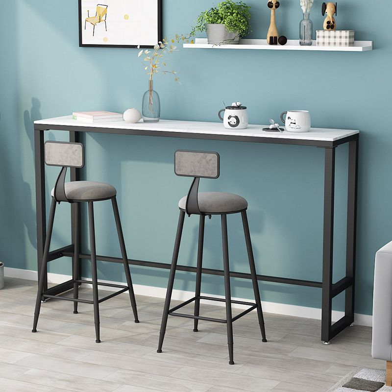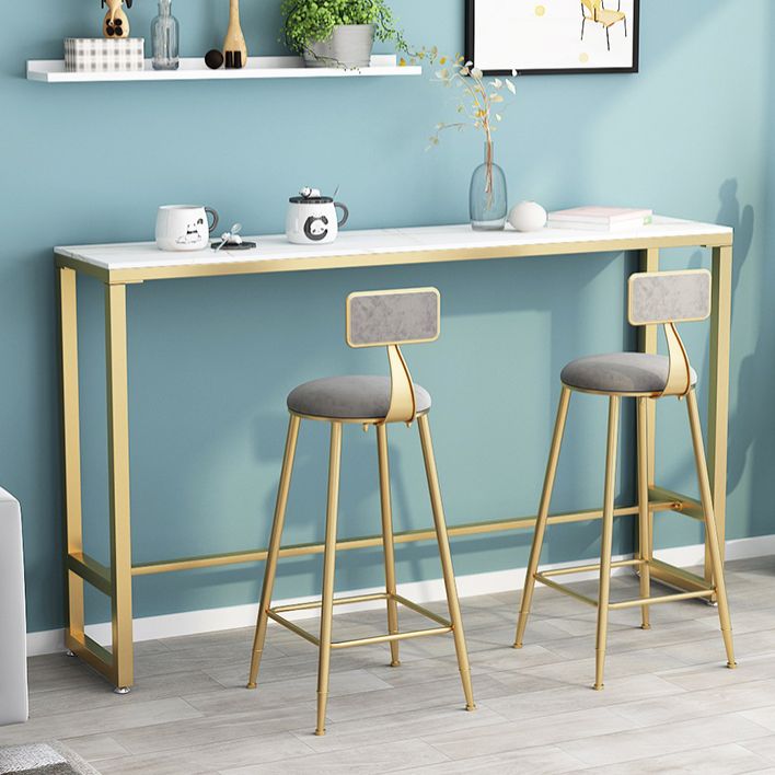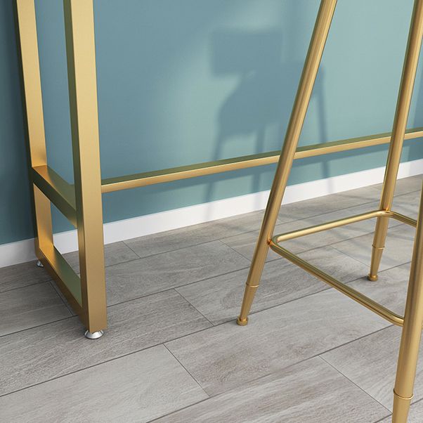 Glam Rectangle Stone Bistro Table Indoor Iron Bar Dining Table with Trestle Pedestal