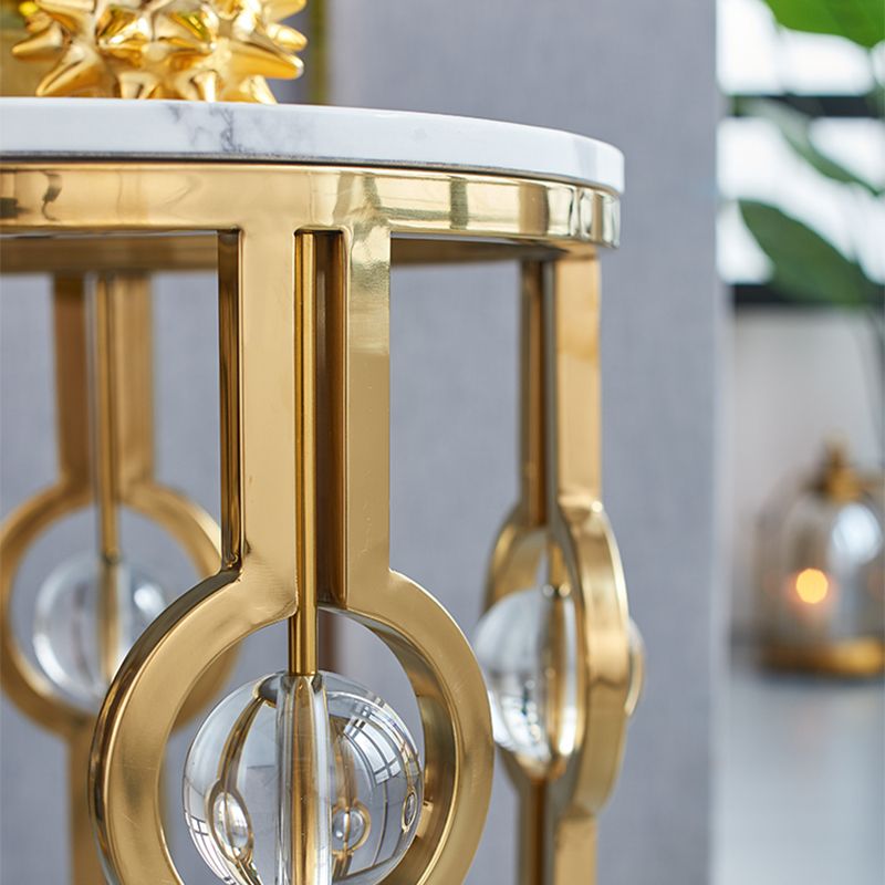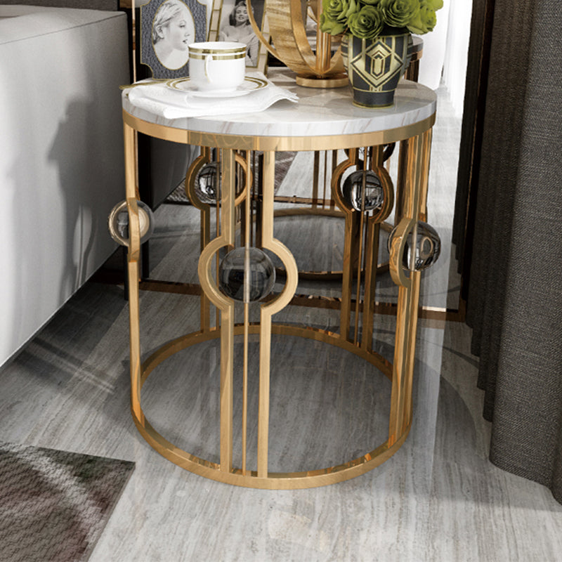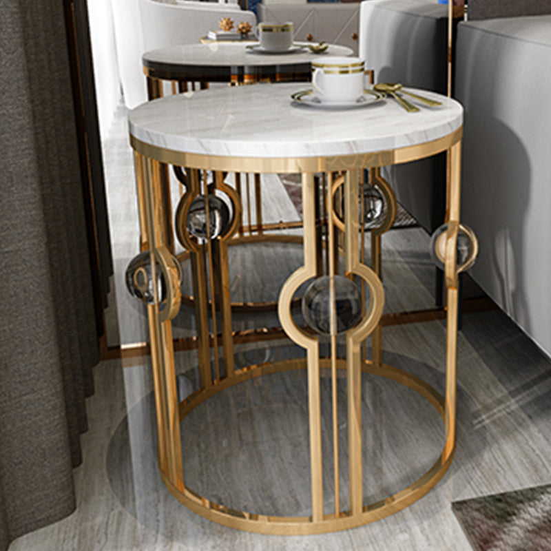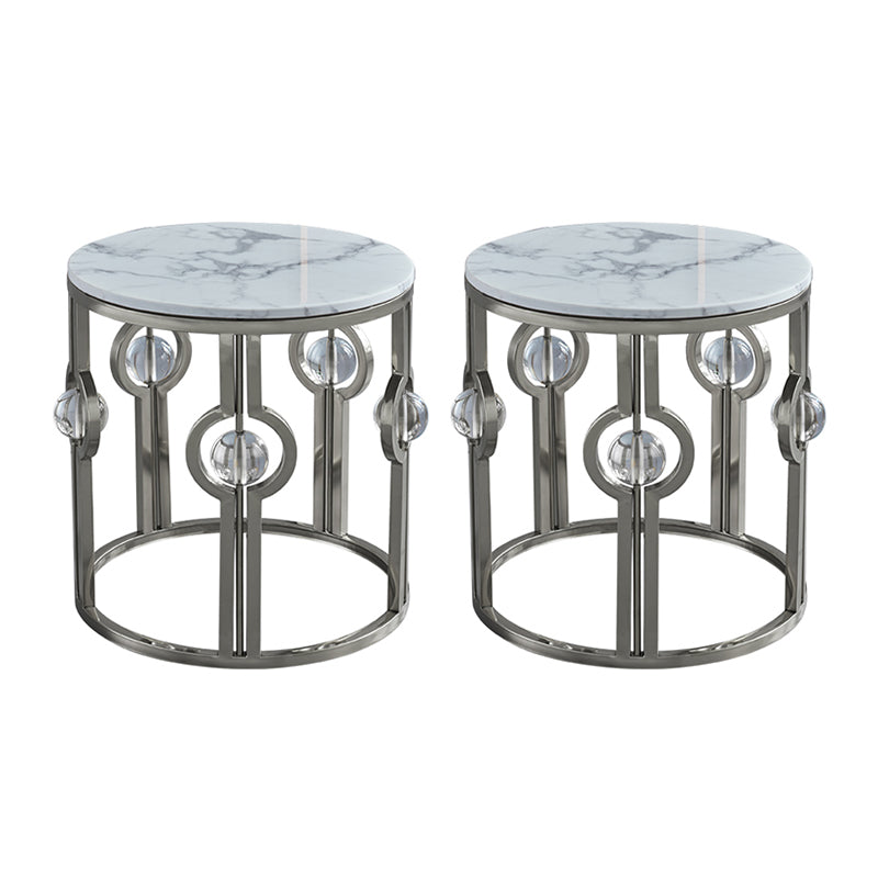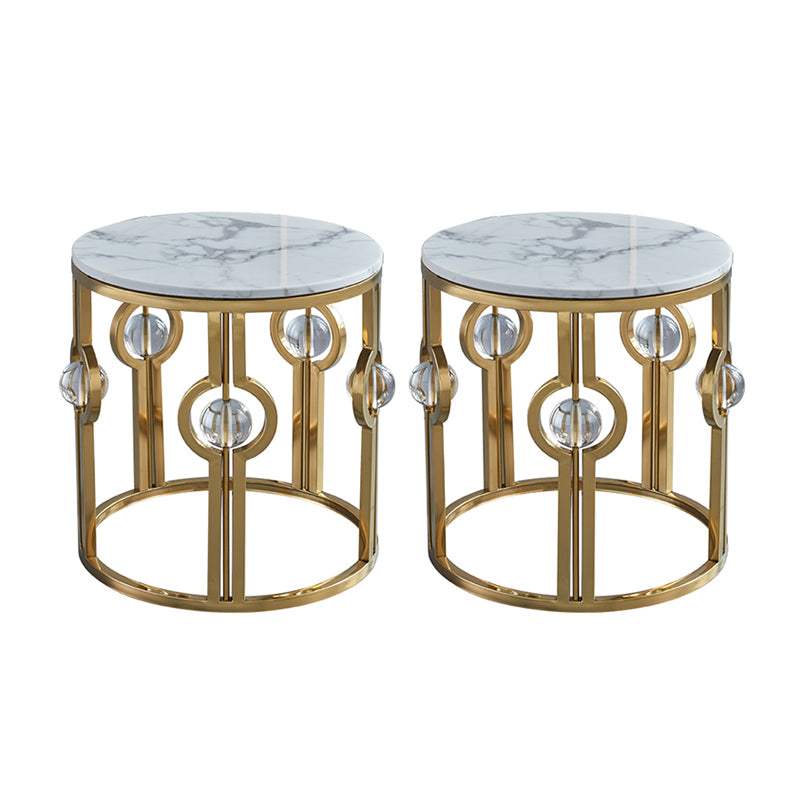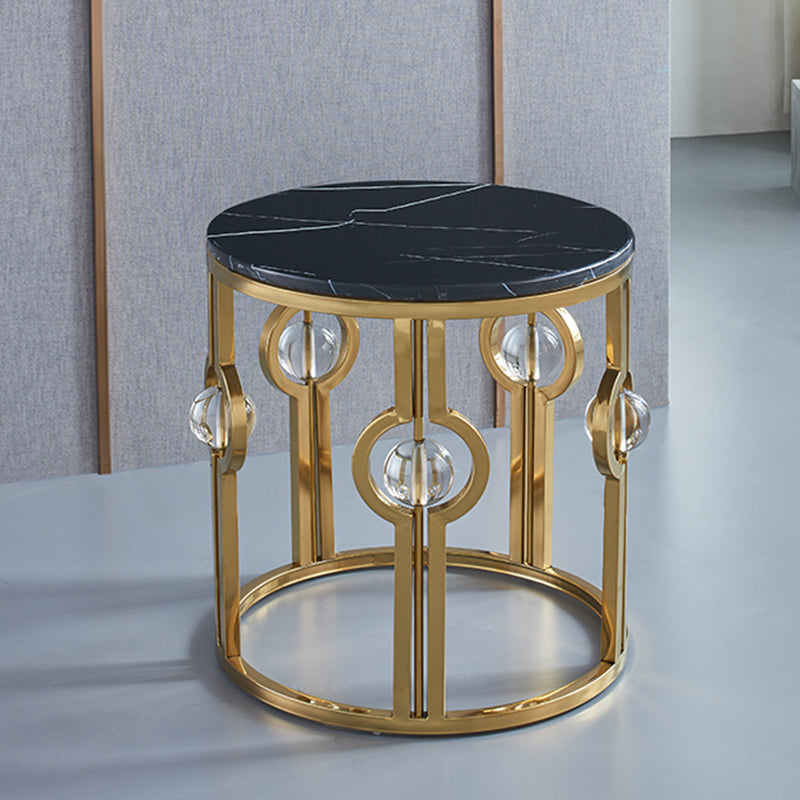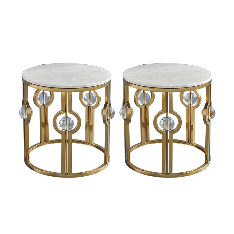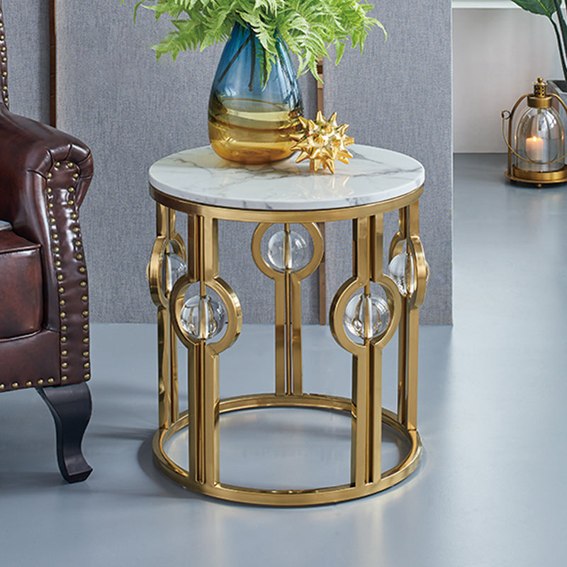Glam Round Sofa Side Accent Table with Drum Base for Living Room