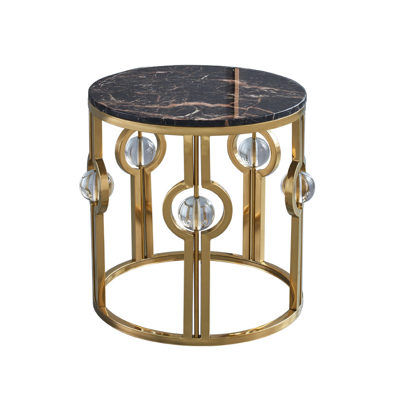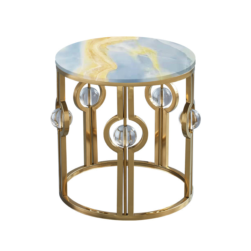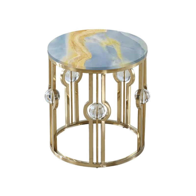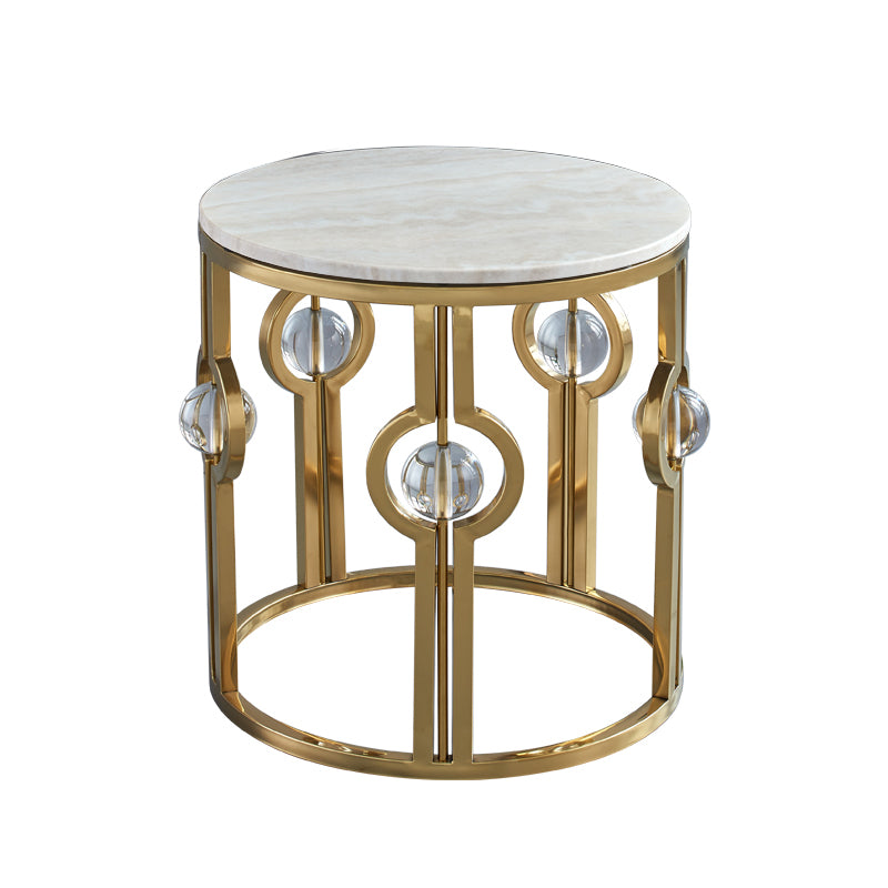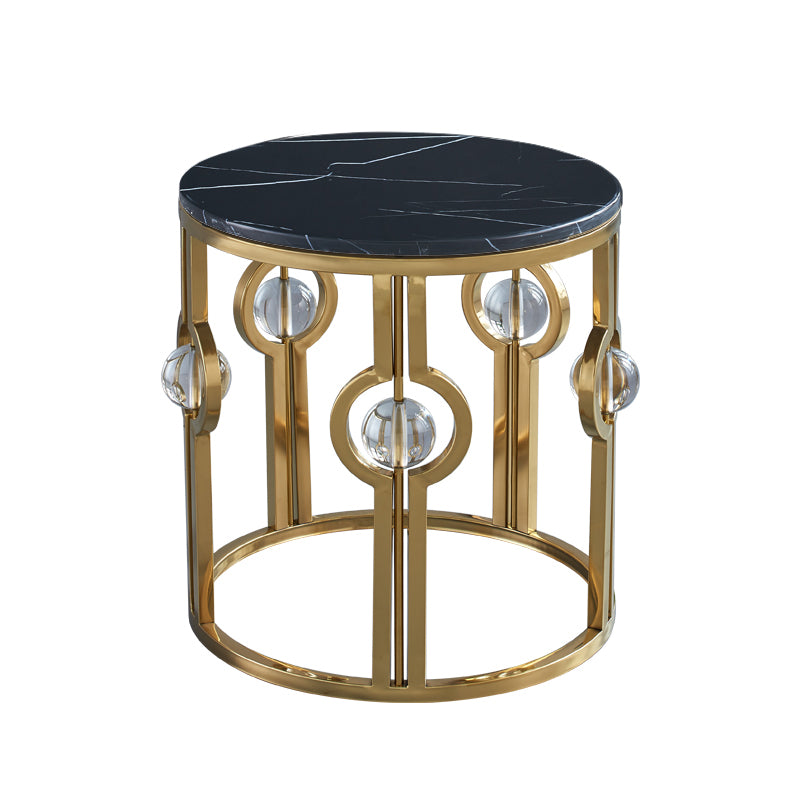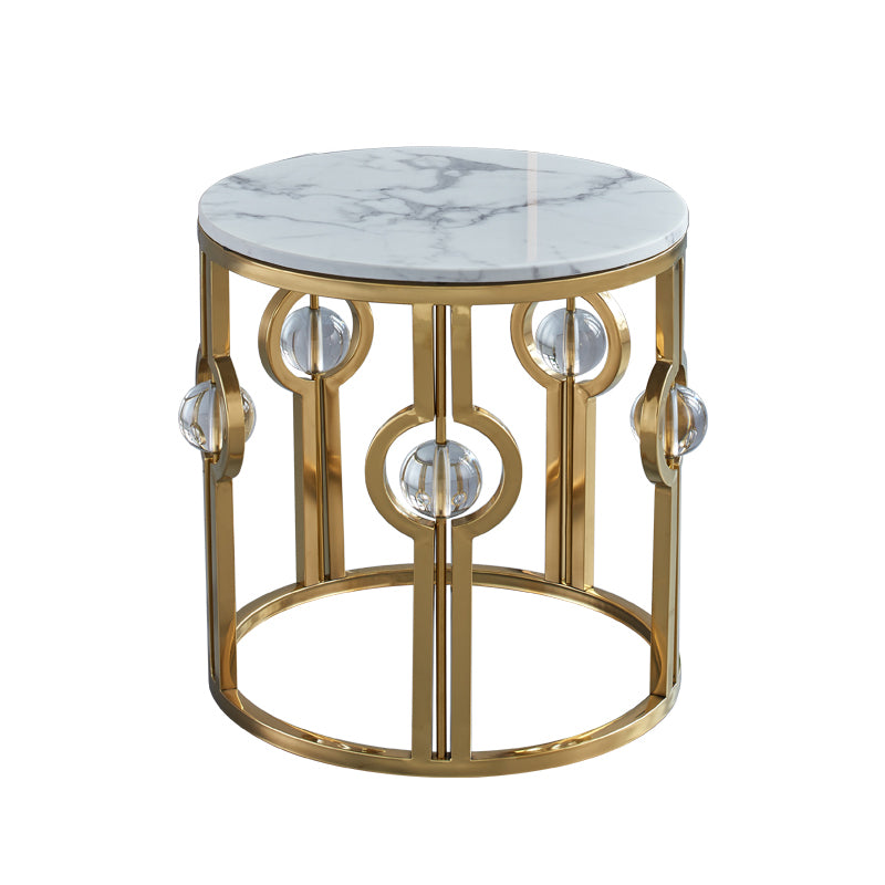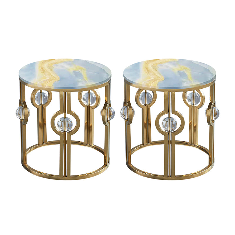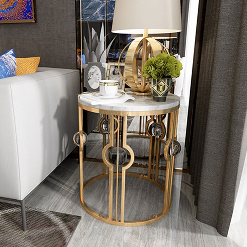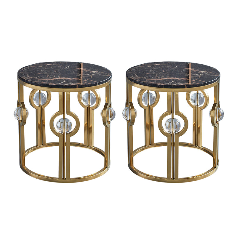 Glam Round Sofa Side Accent Table with Drum Base for Living Room