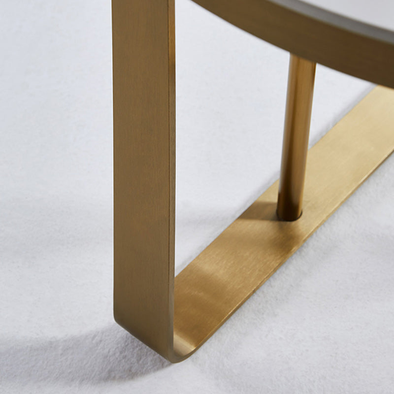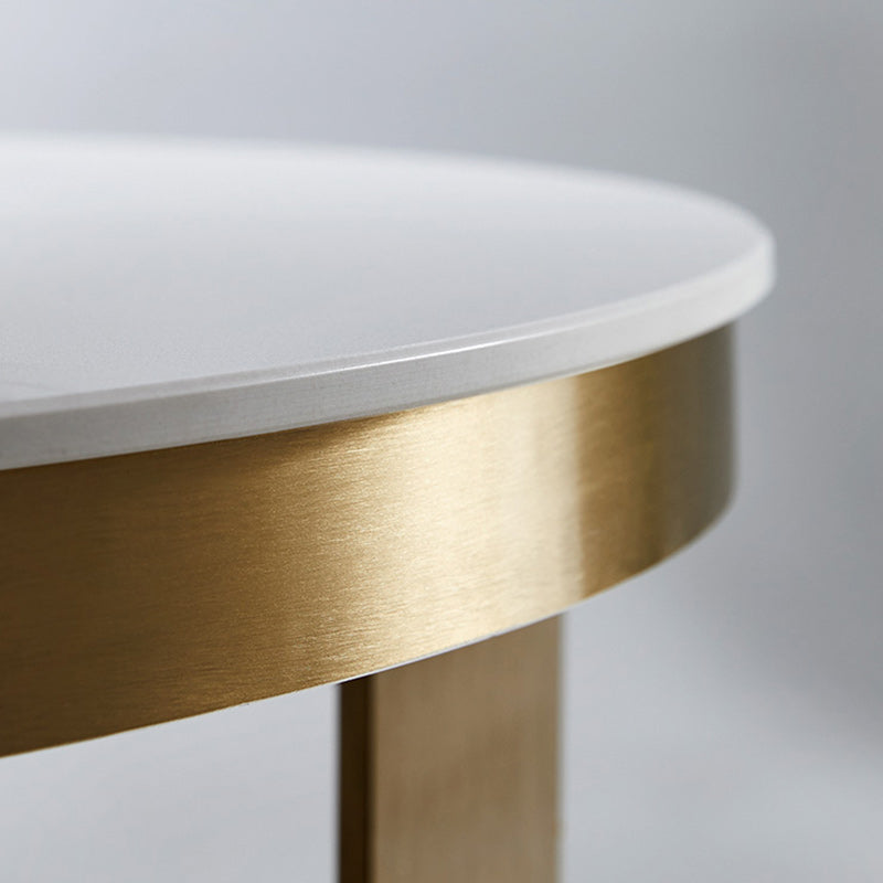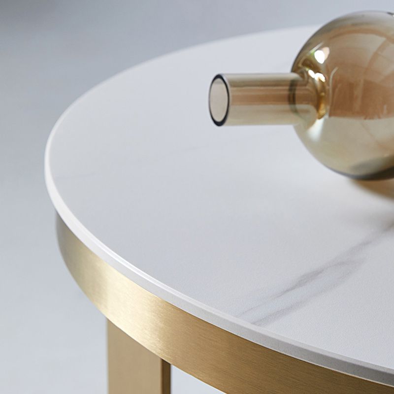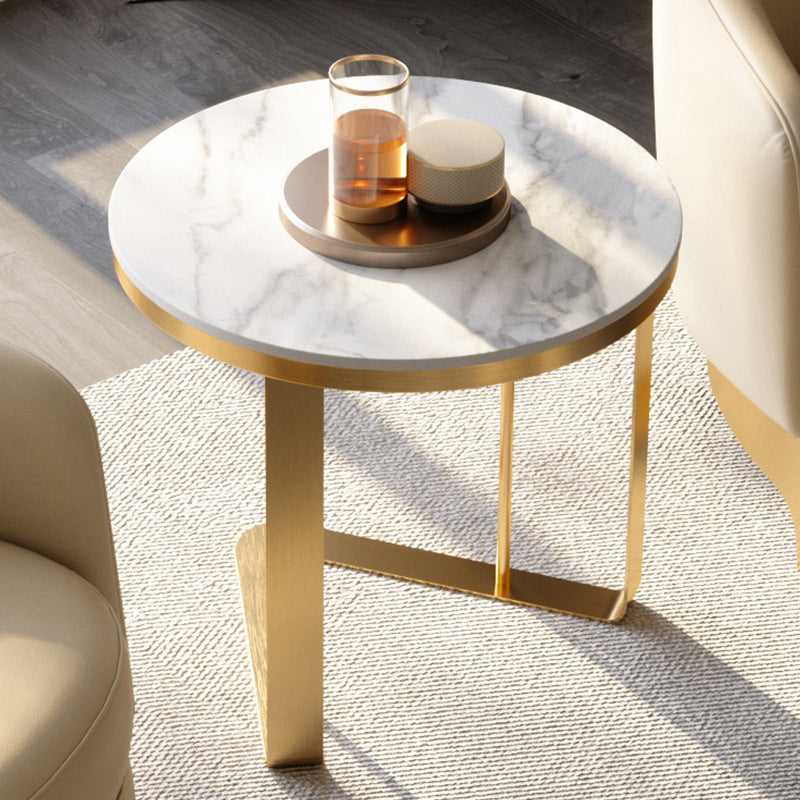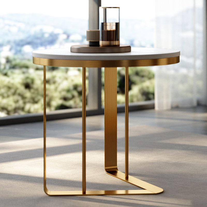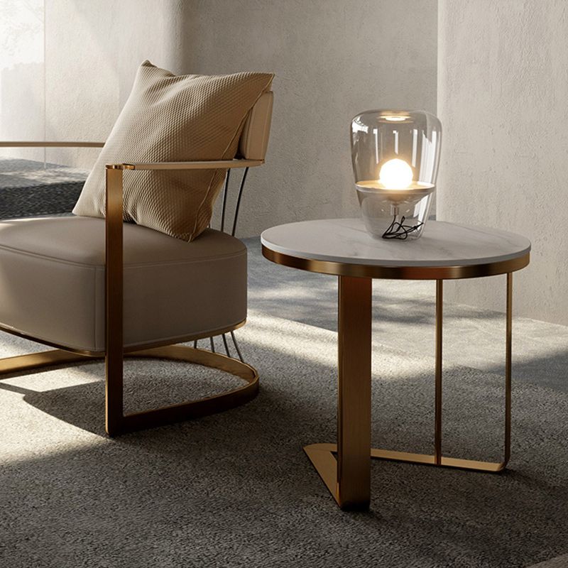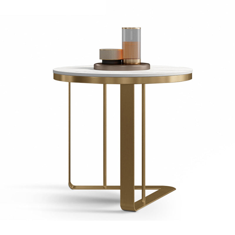 Glam Stone Round Top Side Accent Table Metal Frame End Table