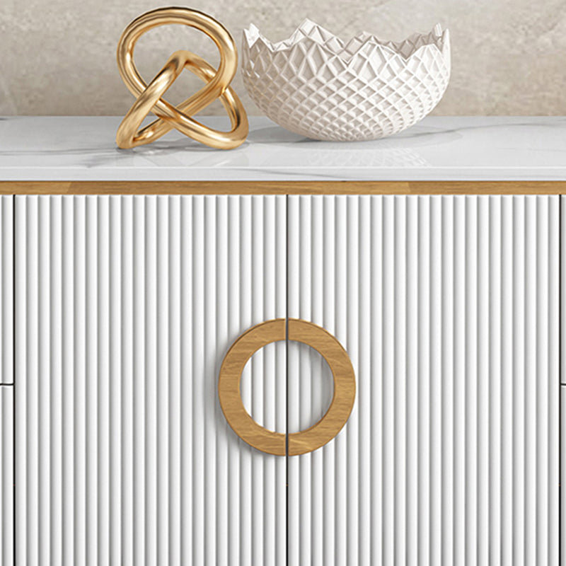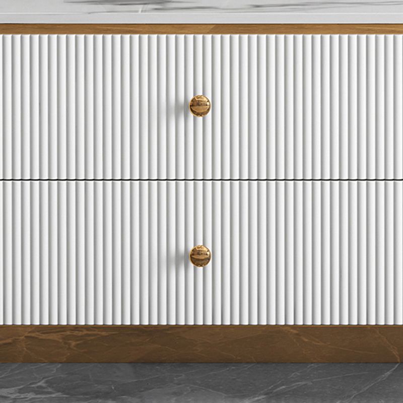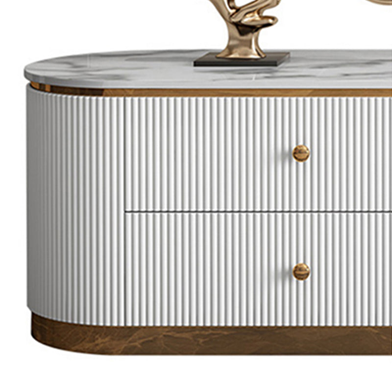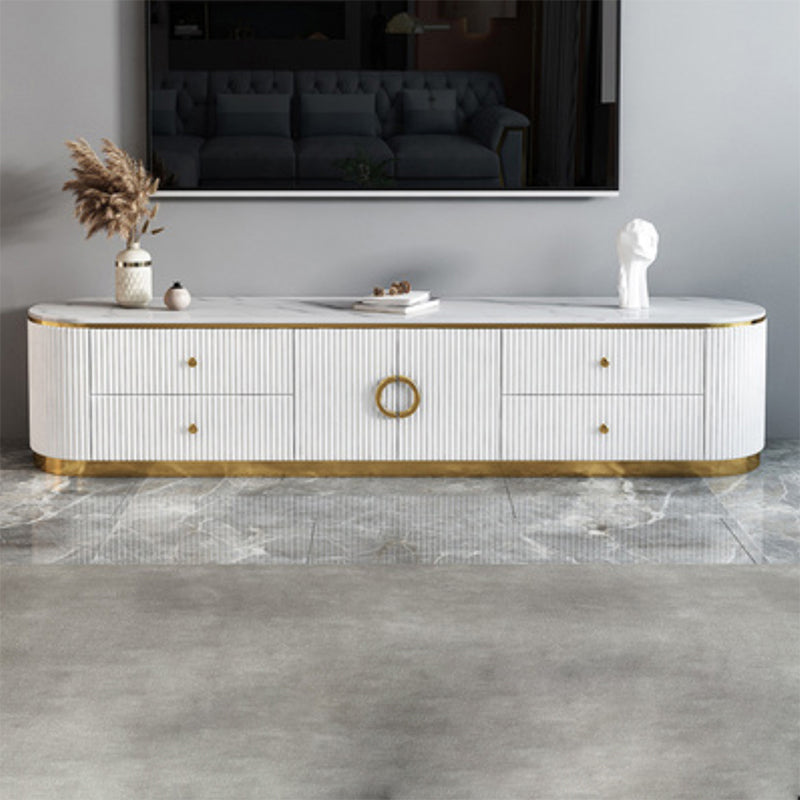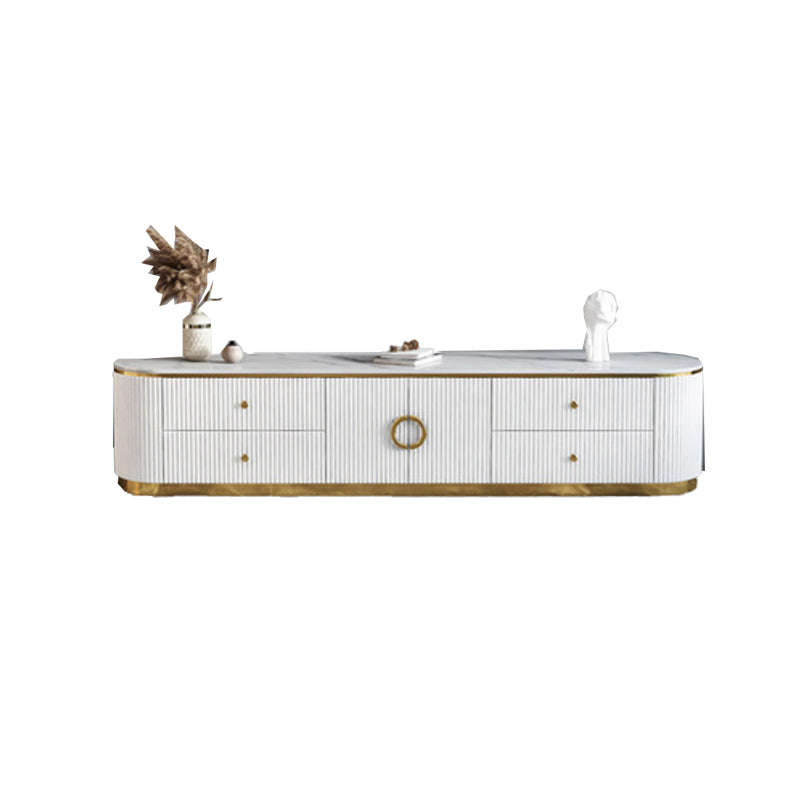 Glam Stone Top TV Stand White 4-Drawer TV Console with Cabinet