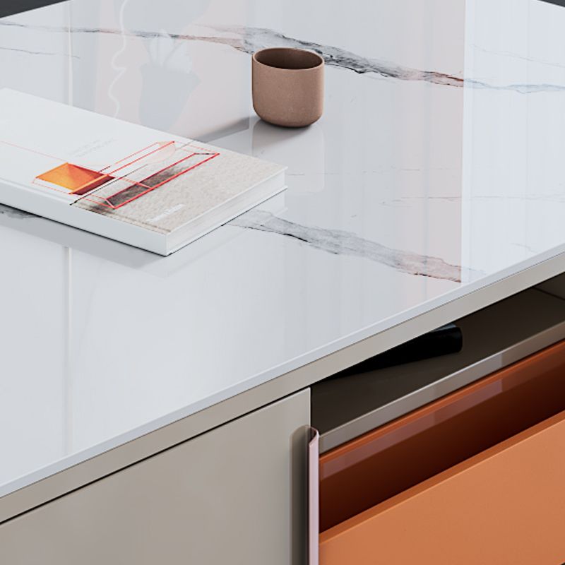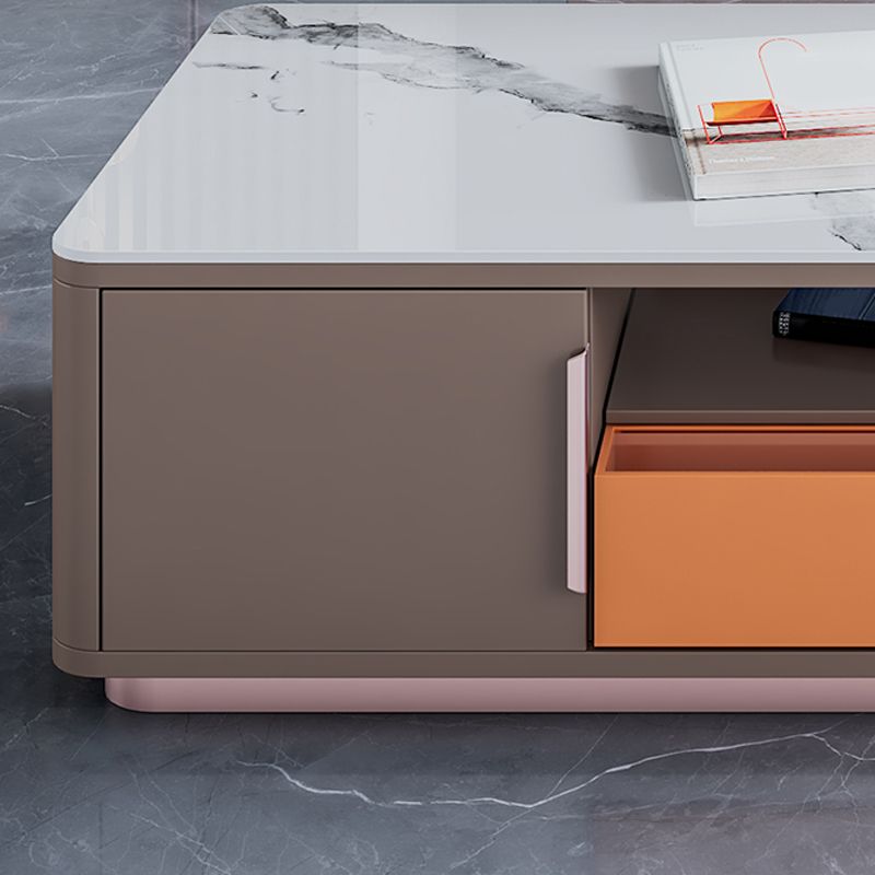 Glam Stone TV Media Open Storage Media Console in White with Storage
