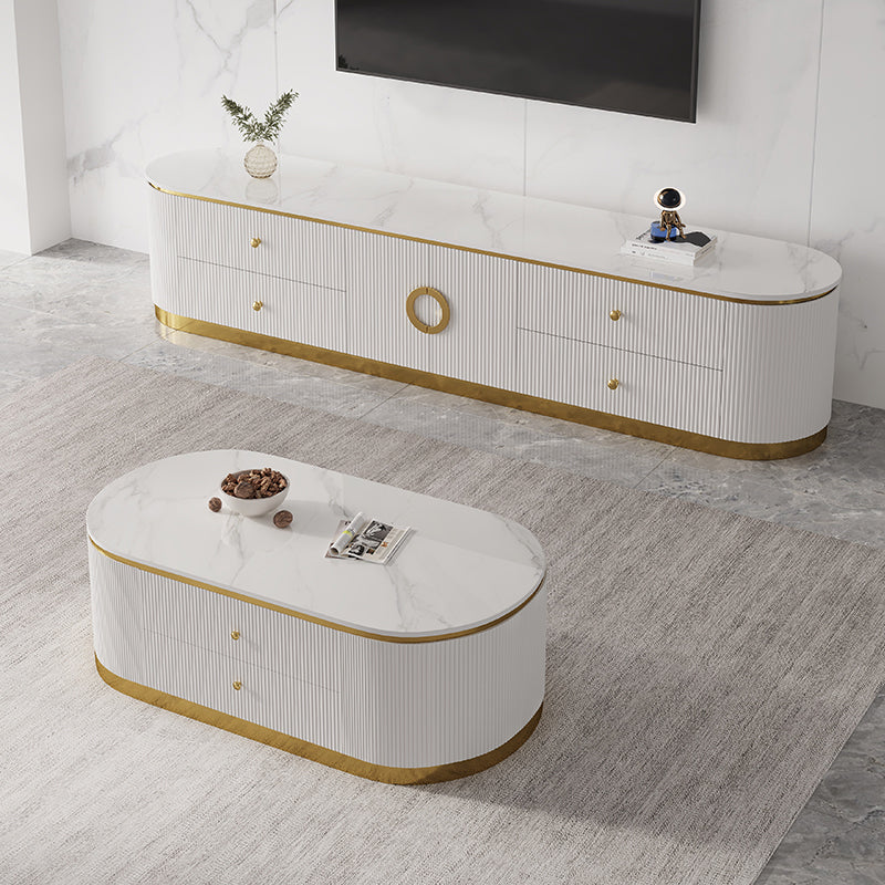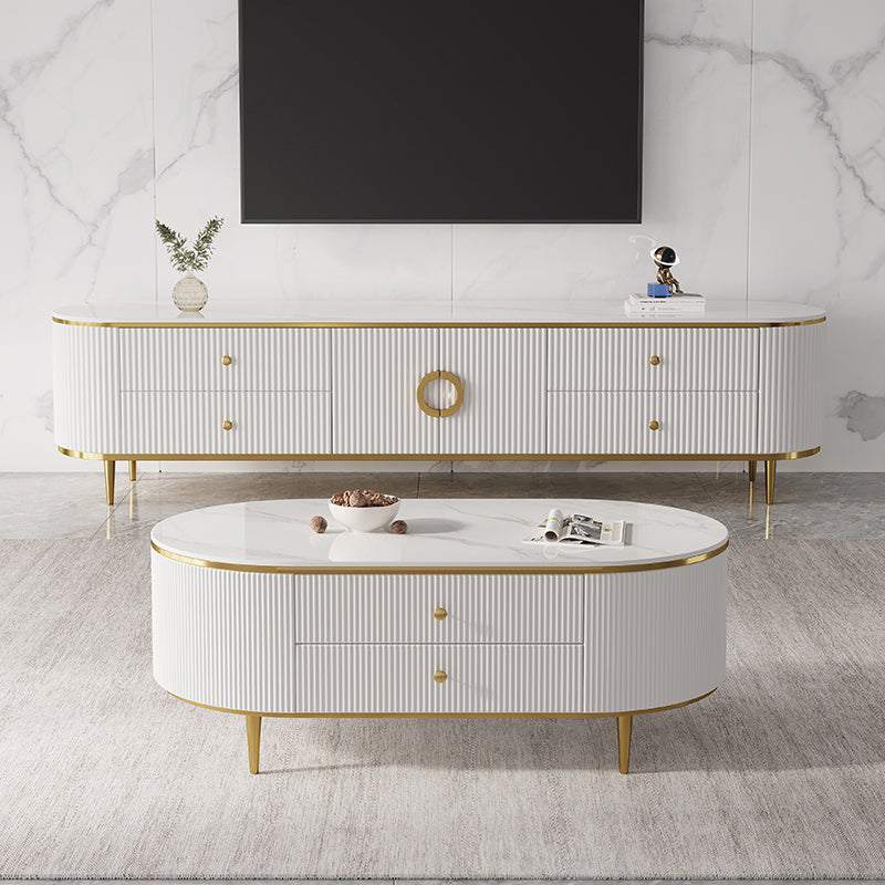 Glam Stone TV Media Stand Enclosed Storage TV Stand Console with Drawers
