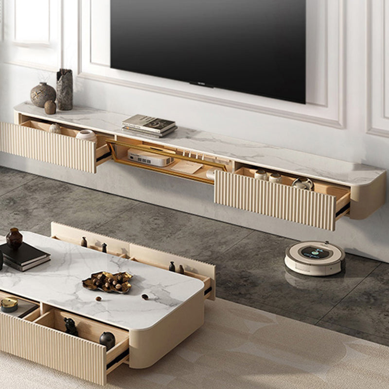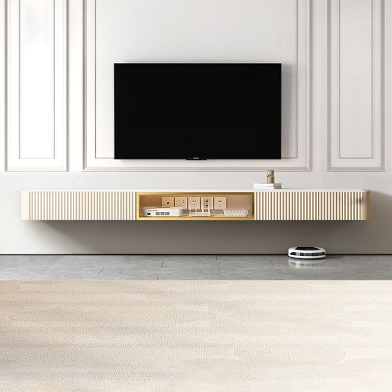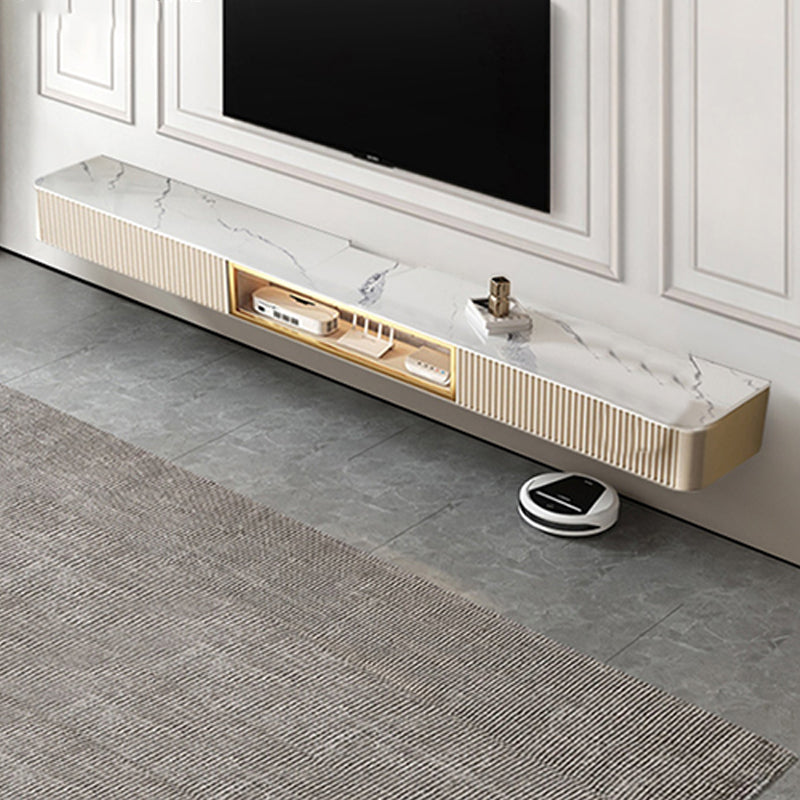 Glam Stone TV Media Stand Enclosed Storage White TV Stand for Living Room