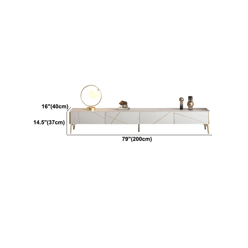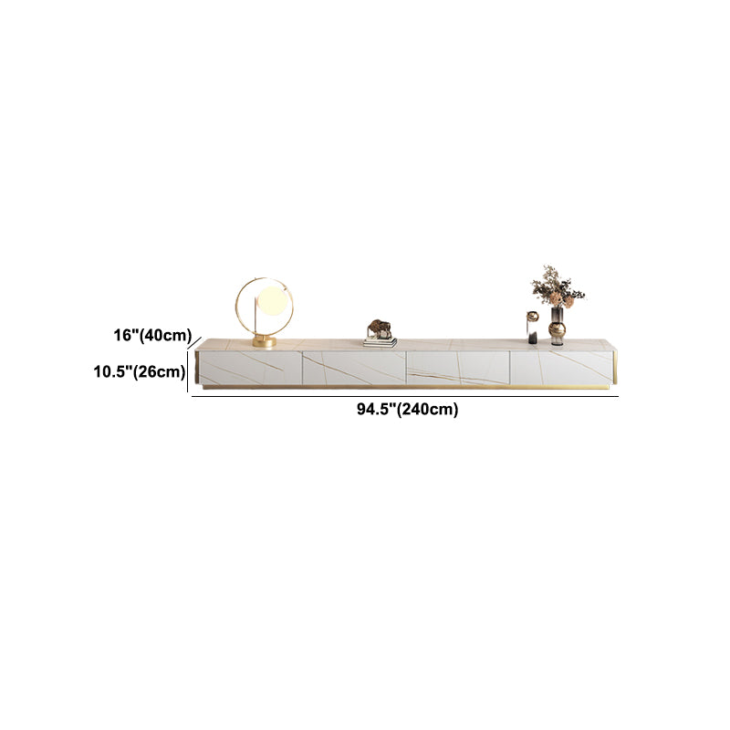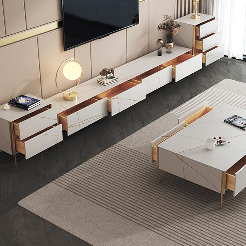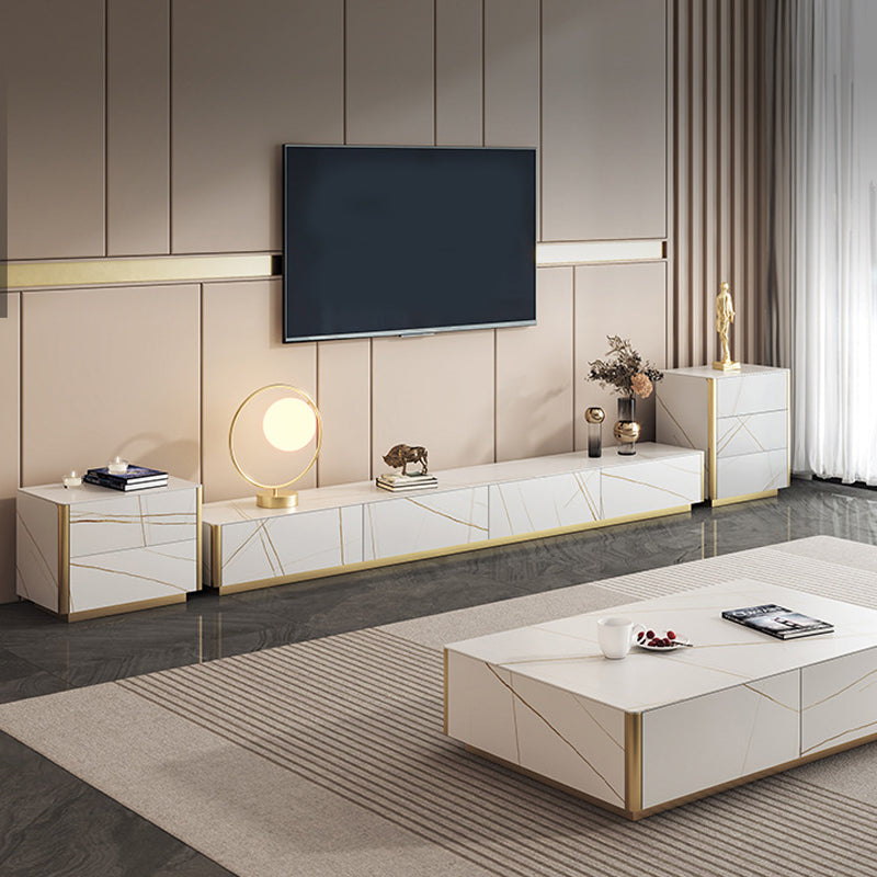 Glam Stone TV Stand White TV Media Stand with Drawers for Living Room