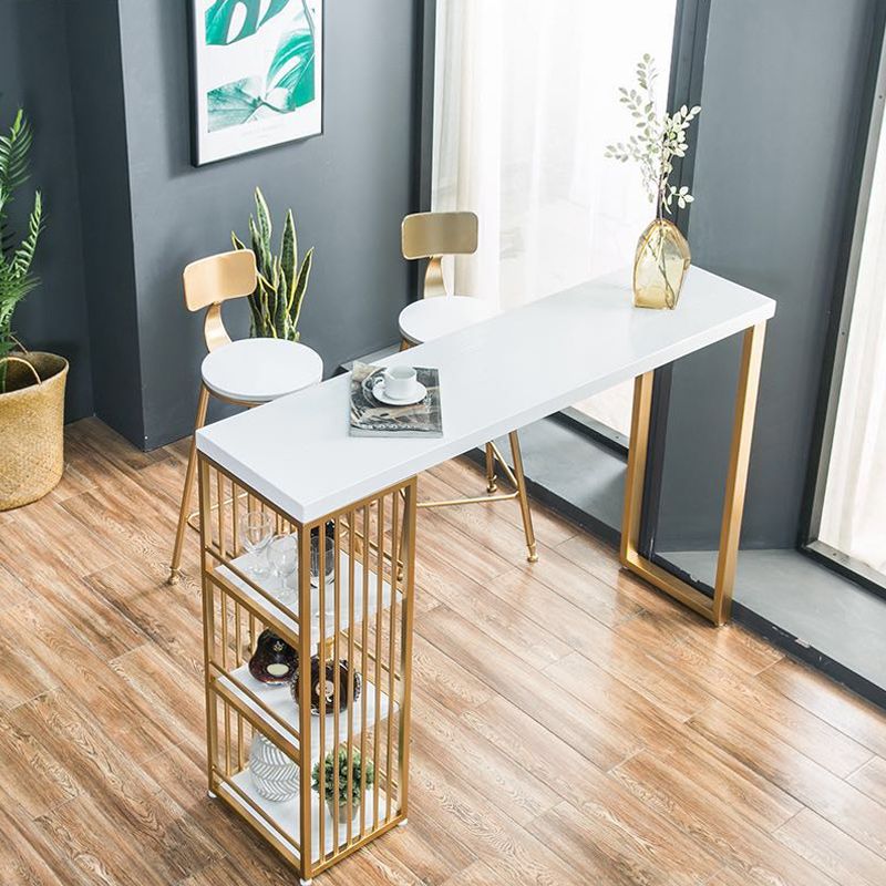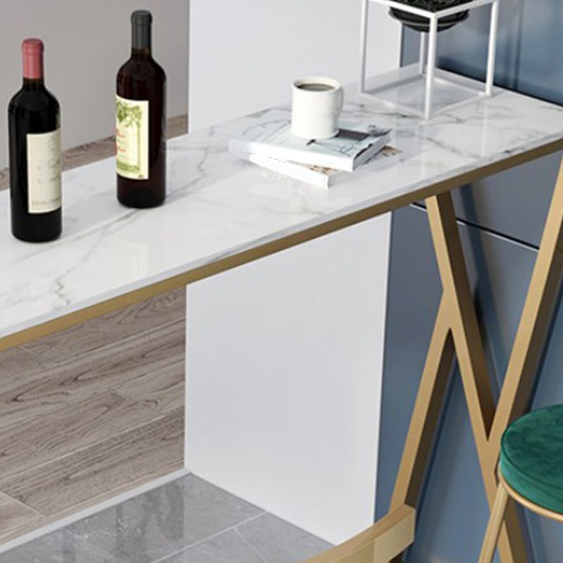 Glam Style Bar Table 42-inch Height Artificial Marble Top Bistro Table with Storage Shelf