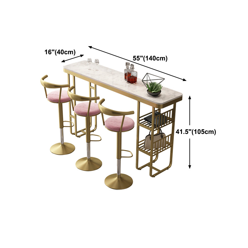 Glam Style Bar Table Artificial Marble Pub Table with Shelf for Dining Room, Only Table