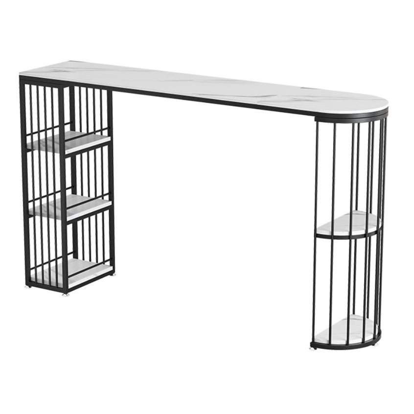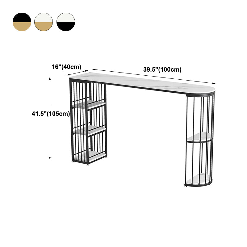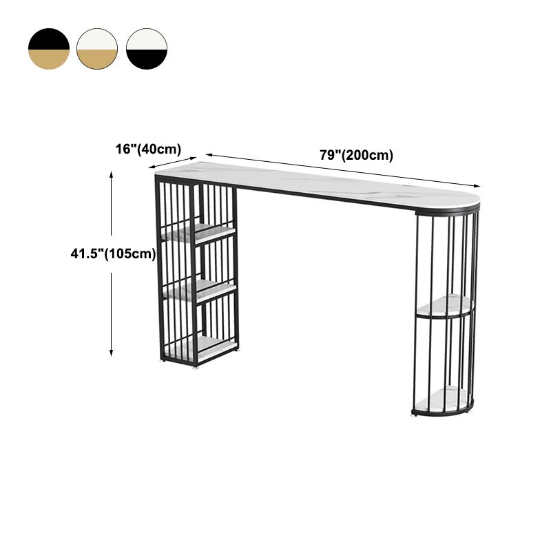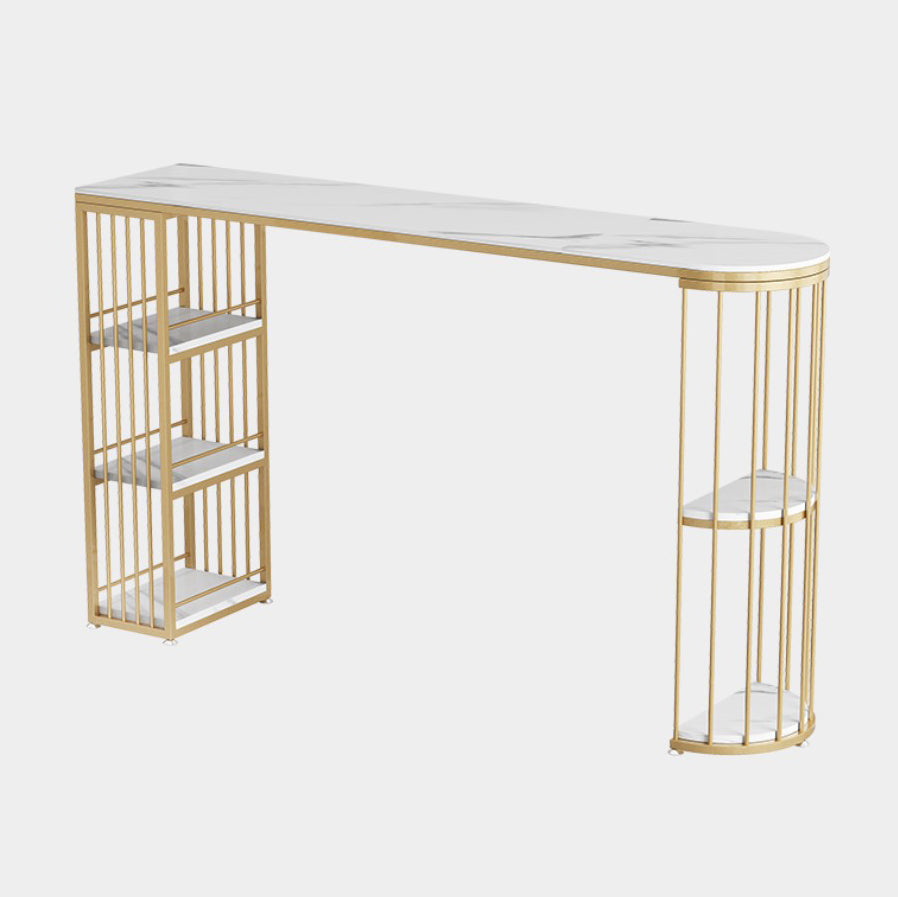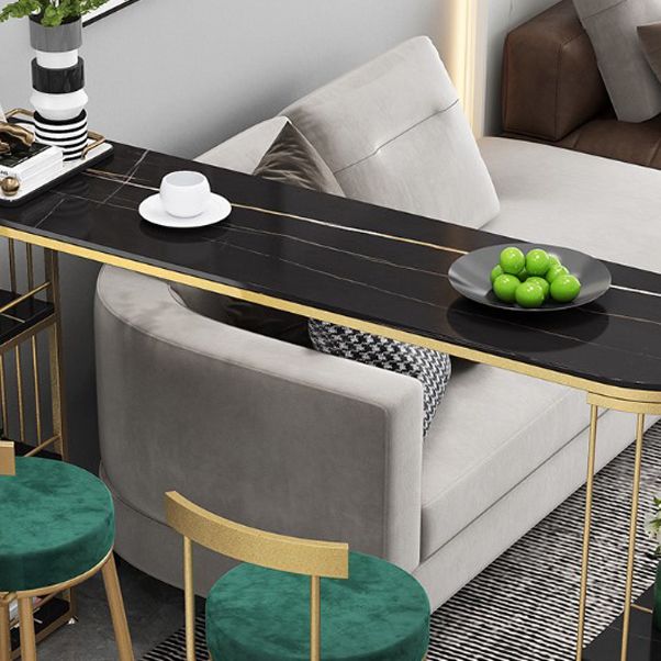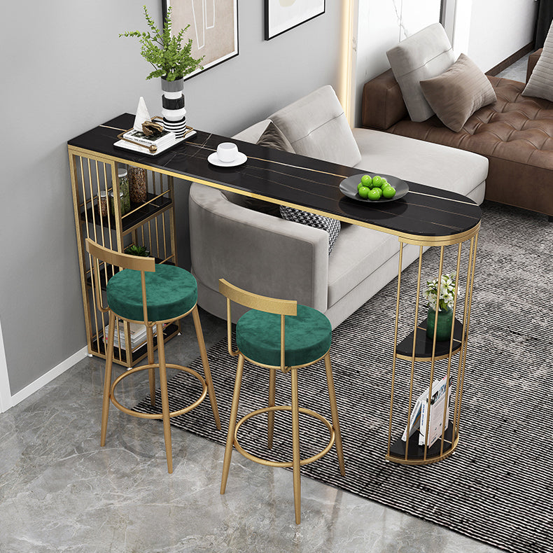 Glam Style Bar Table Stone Pub Table with Iron Shelf for Dining Room, Only Table