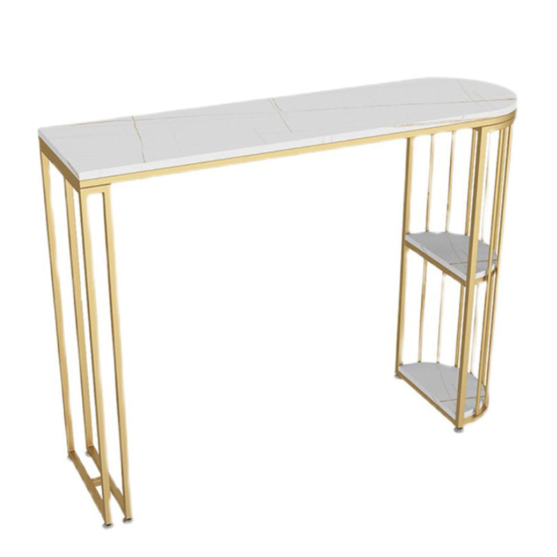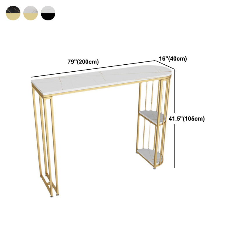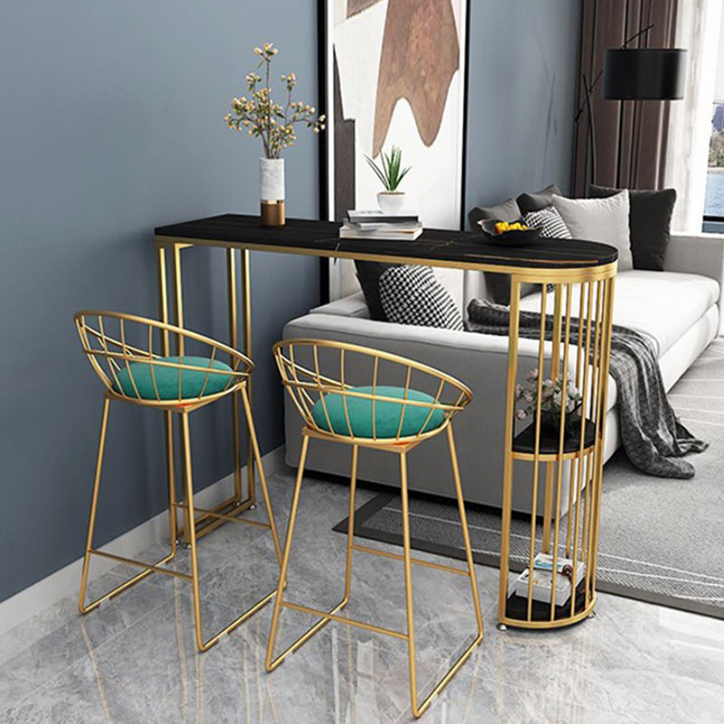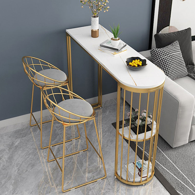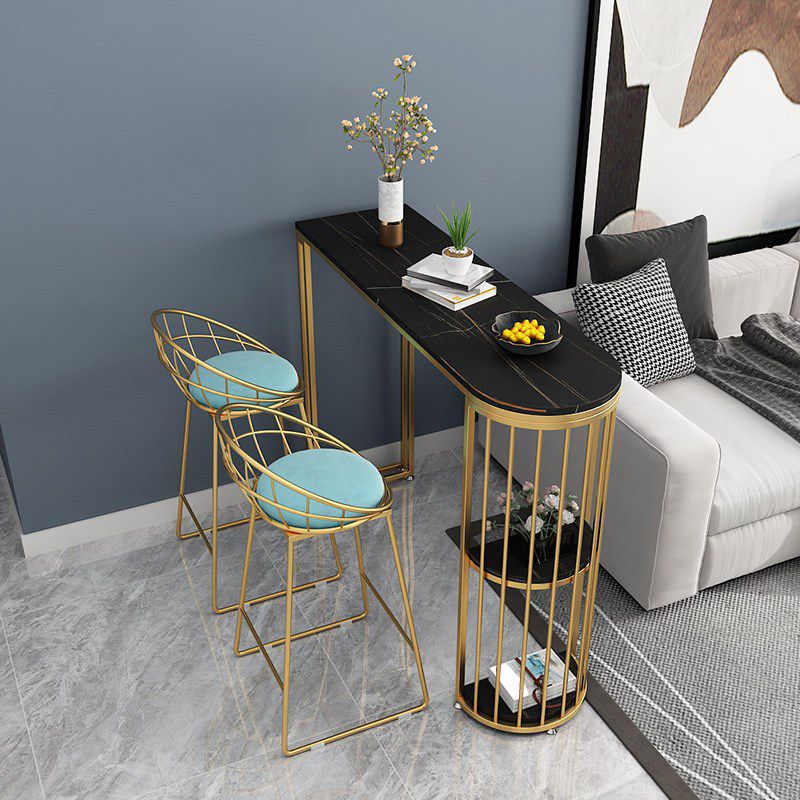 Glam Style Bar Table Stone Top Indoor Bistro Table with Storage Rack