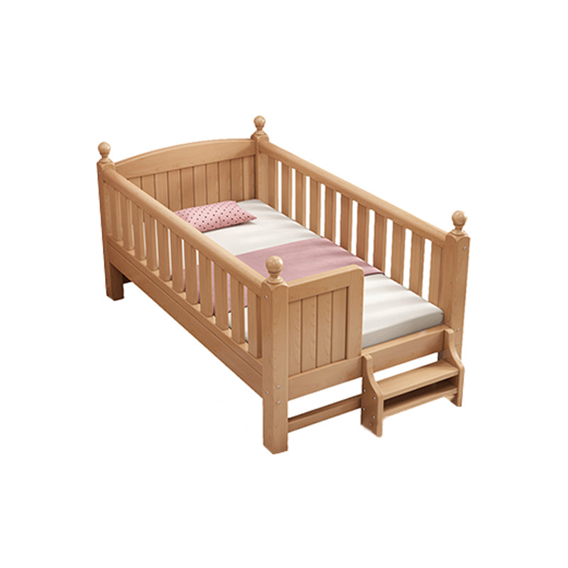 Glam Style Beech Wood Nursery Bed with Mattress and Guardrail