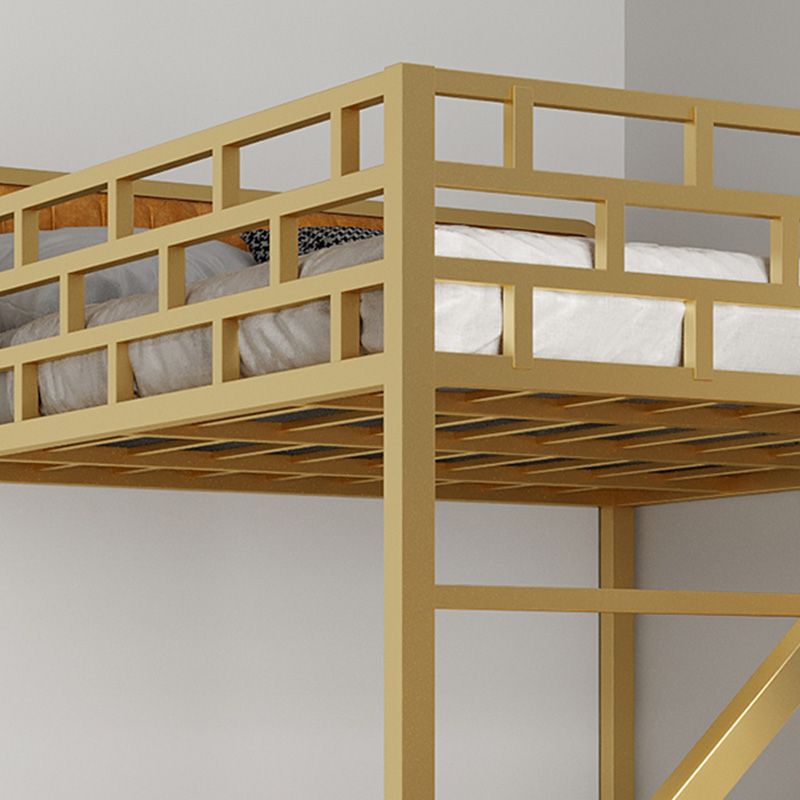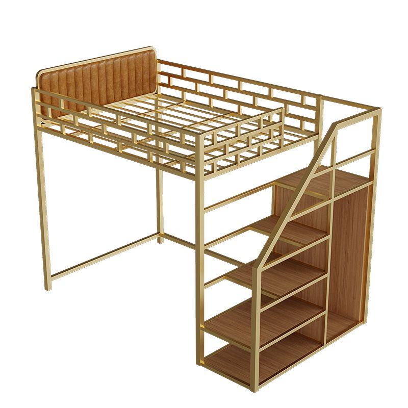 Glam Style Loft Bed in Iron with Shelves and Guardrail Storage Bed