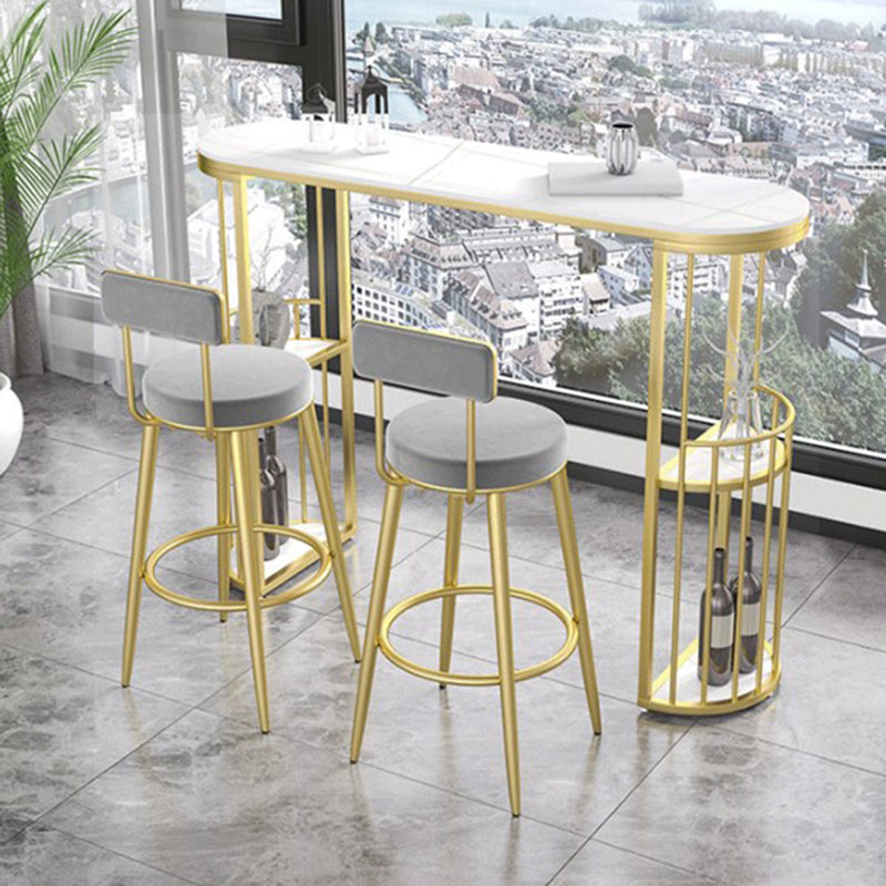 Glam Style Sintered Stone Top Oval Bar Dining Table with Shelves