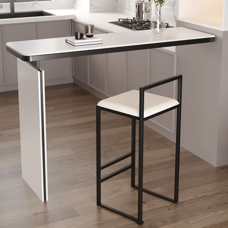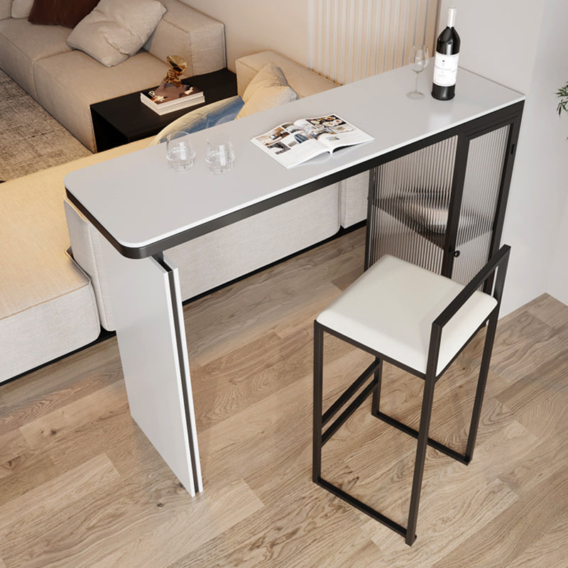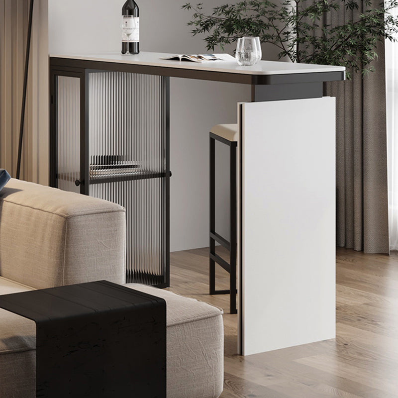 Glam Style Sintered Stone Top Rectangle Bar Dining Table with Storage