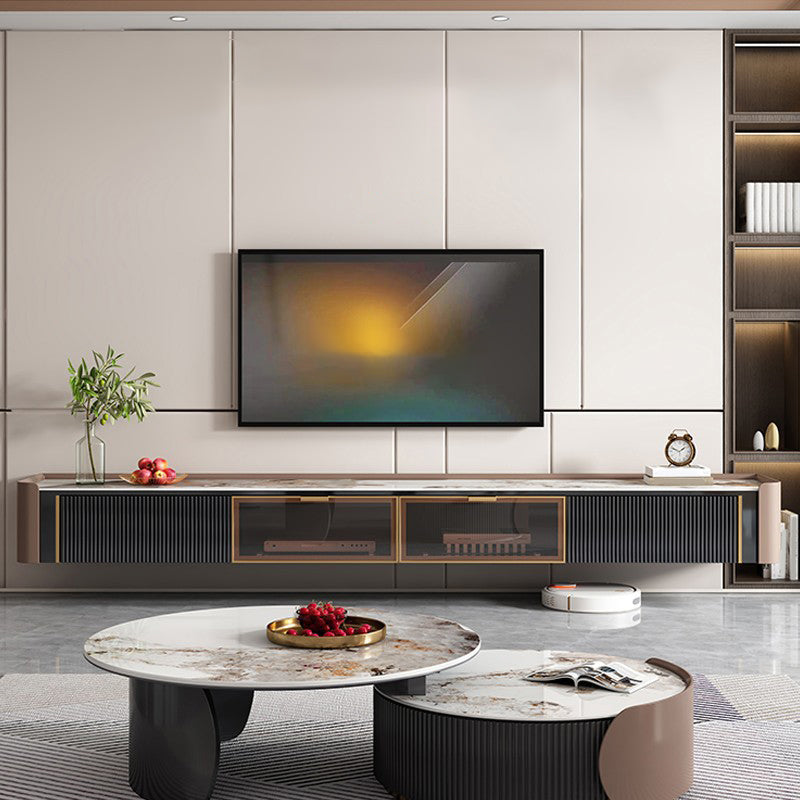 Glam Style Stone TV Stand Wall-mounted TV Cabinet with Doors and Drawers