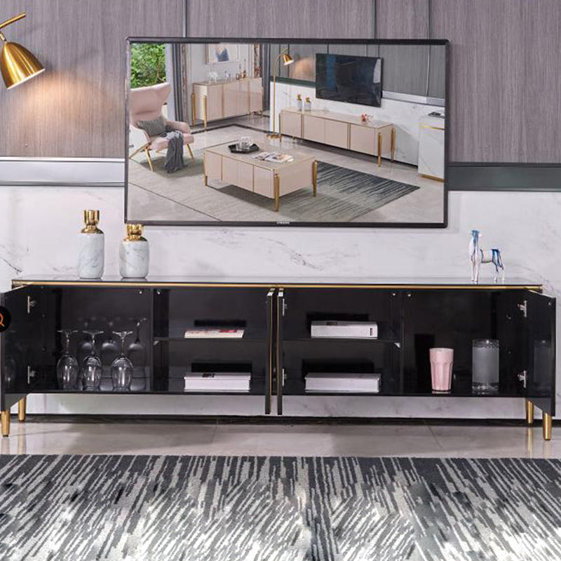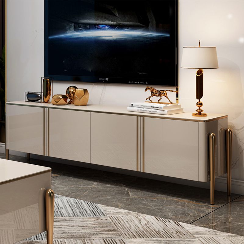 Glam Style TV Console Stainless Steel Legs TV Stand with 2 Cabinets