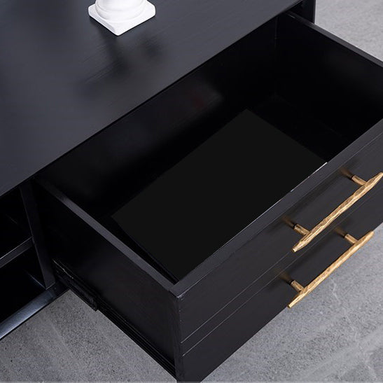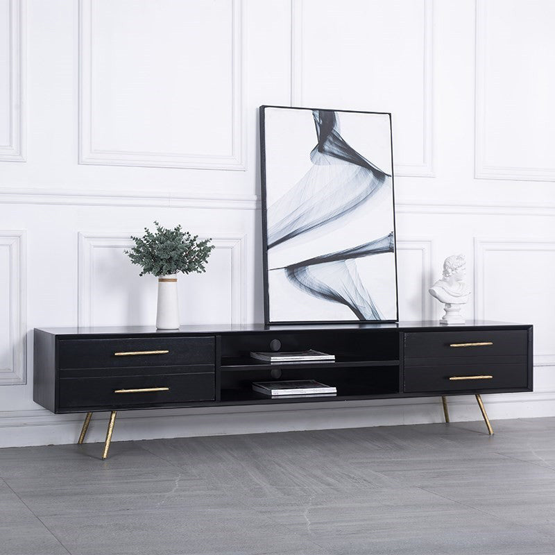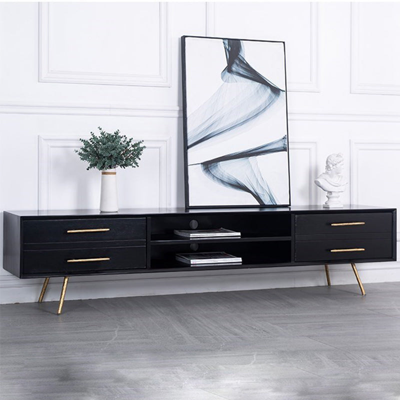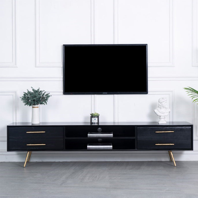 Glam Style TV Stand Black Colour Wood TV Console with Open Storage