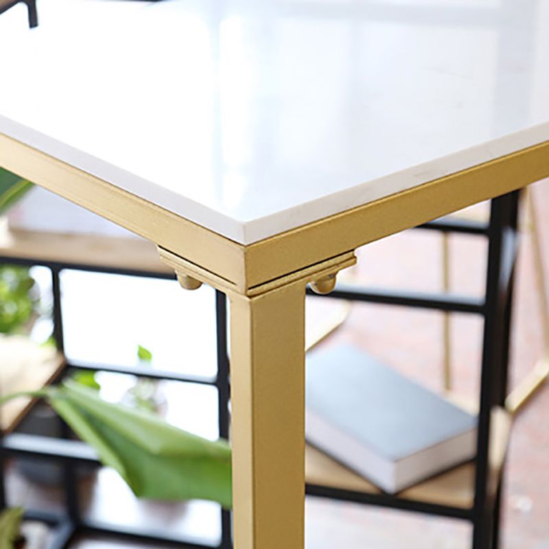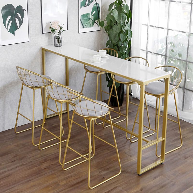 Glam White Marble Bar Table with Rectangle Table Top Gold Trestle Table - 42" H