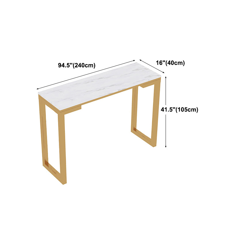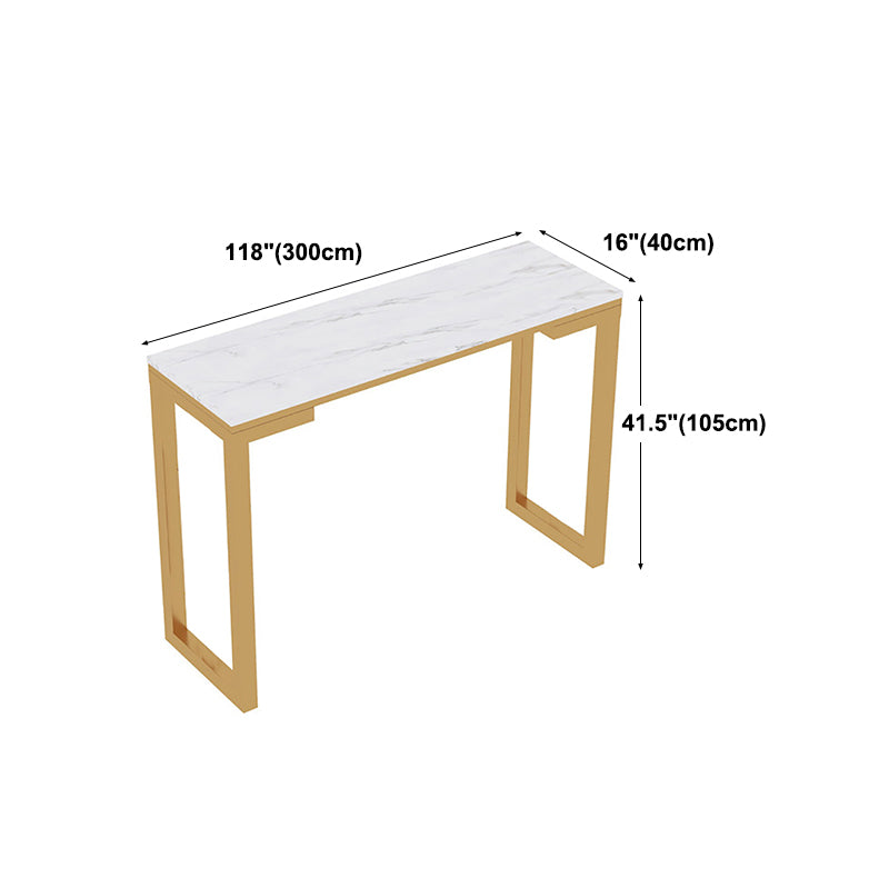 Glam White Marble Table with Rectangle Table Top Gold Sled Table - 42" H