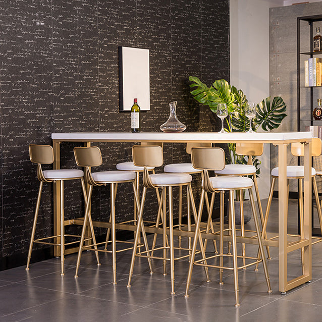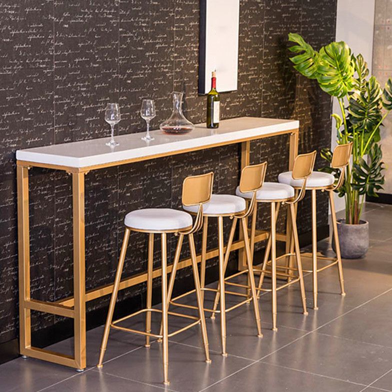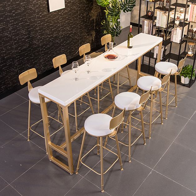 Glam White Metal Counter Table with Rectangle Table Top Gold Trestle Table - 43" H