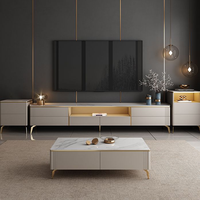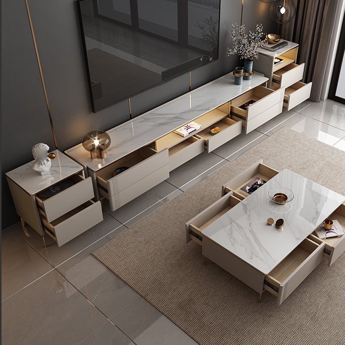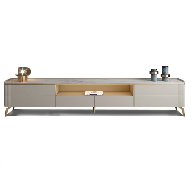 Glam White TV Media Console 13.7" Height TV Stand with 6 Drawers