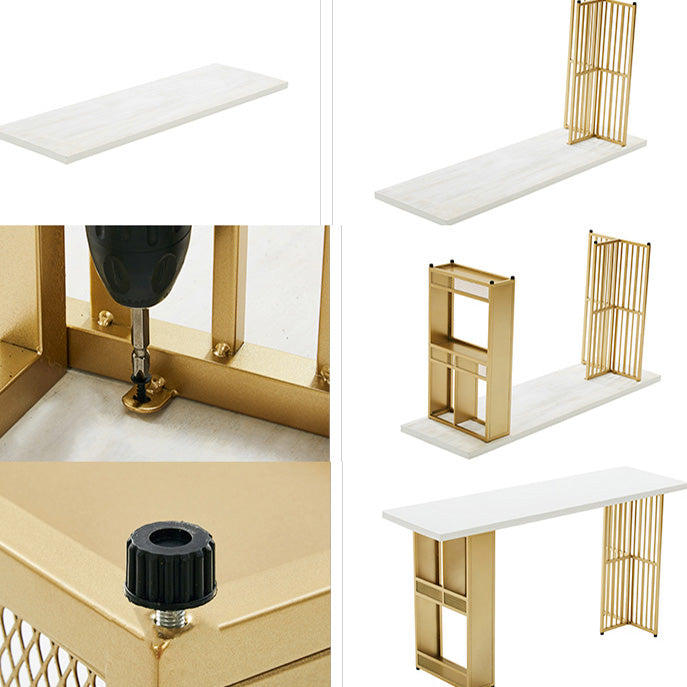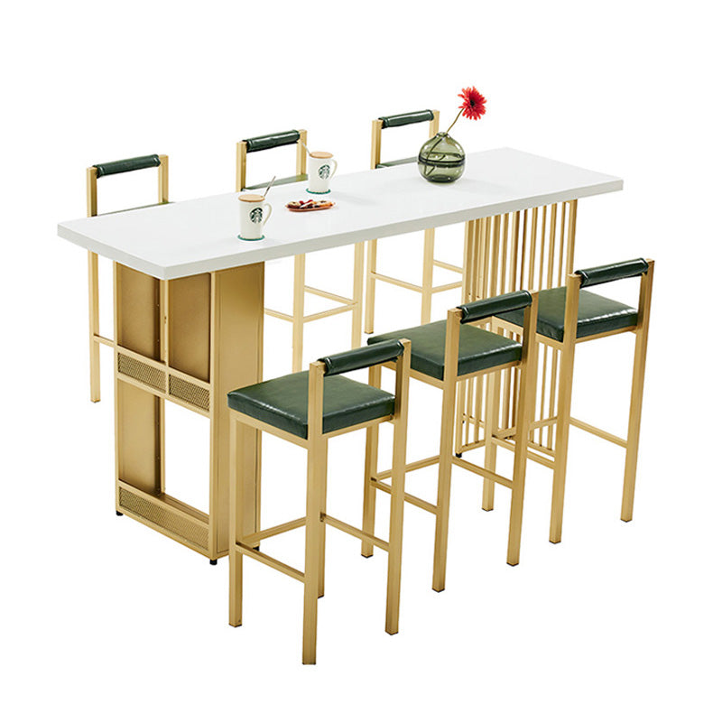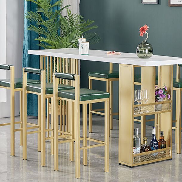 Glam Wood Bar Table with Rectangle Table Top Gold Double Pedestal Table - 42" H