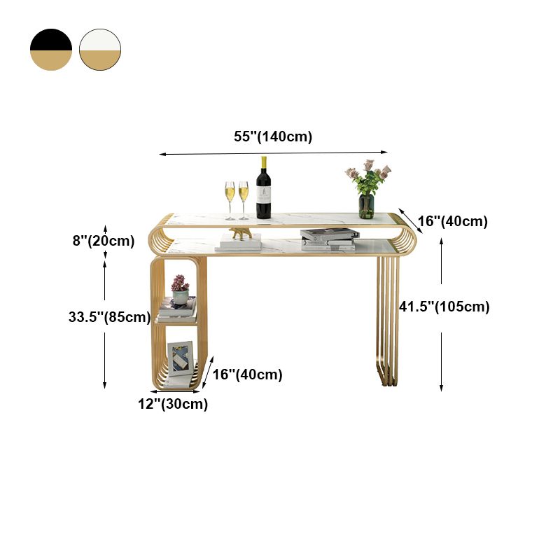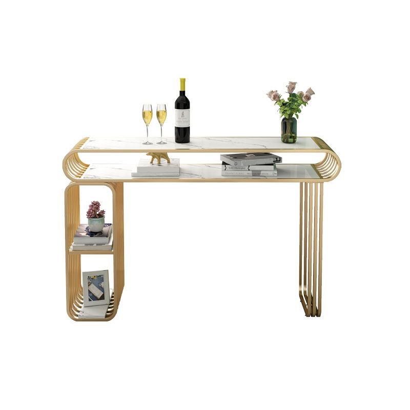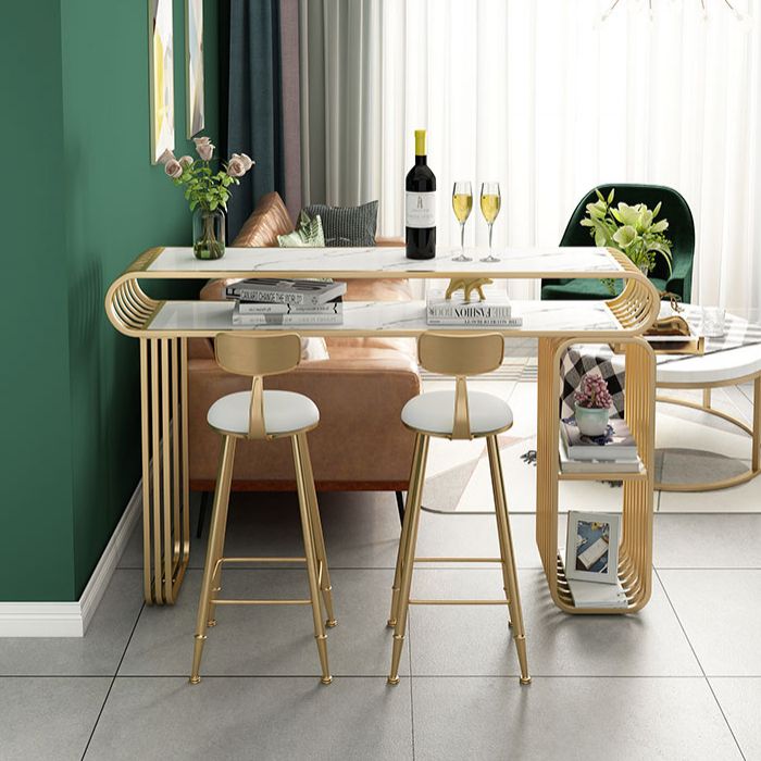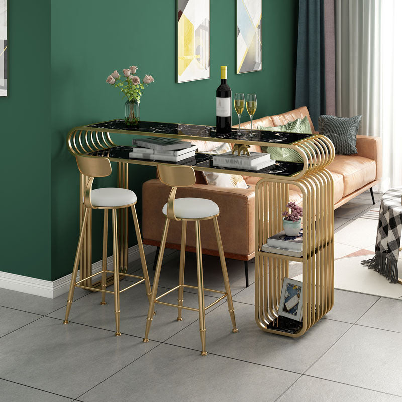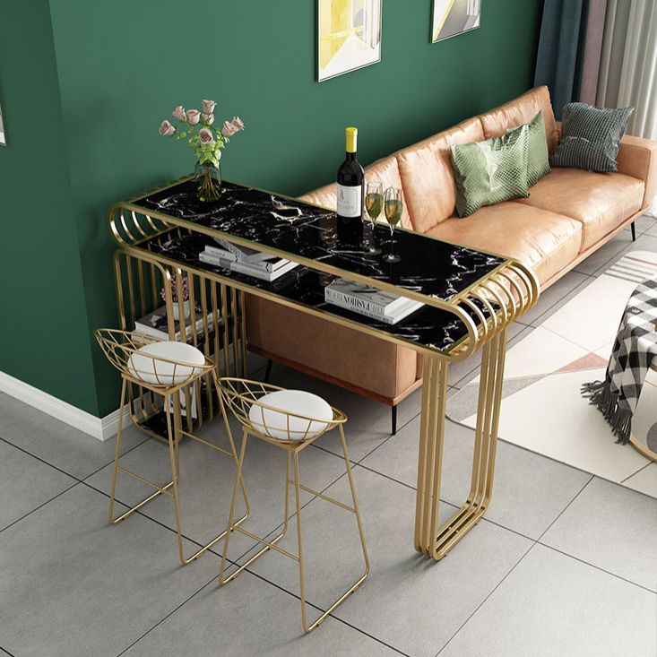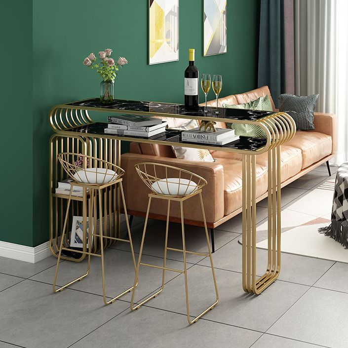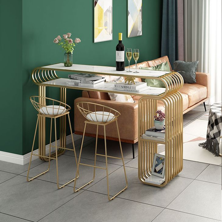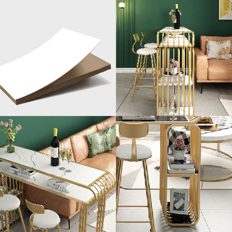 Glam Wood Pub Table with Rectangle Table Top Gold Double Pedestal Table - 42" H