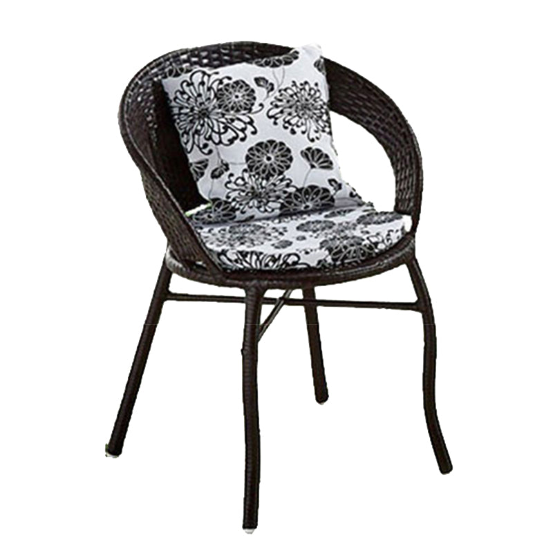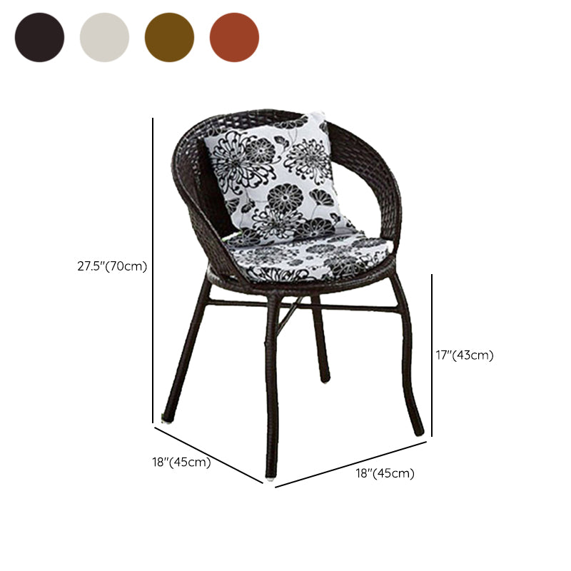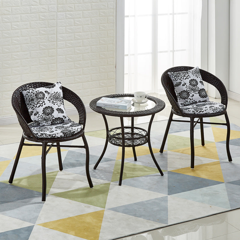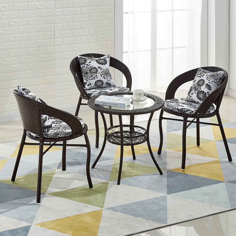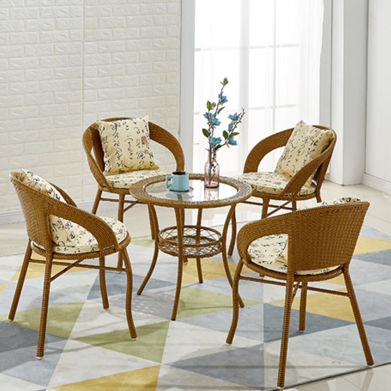 Glass Dining Table Set with Armless Rattan Chairs for Courtyard