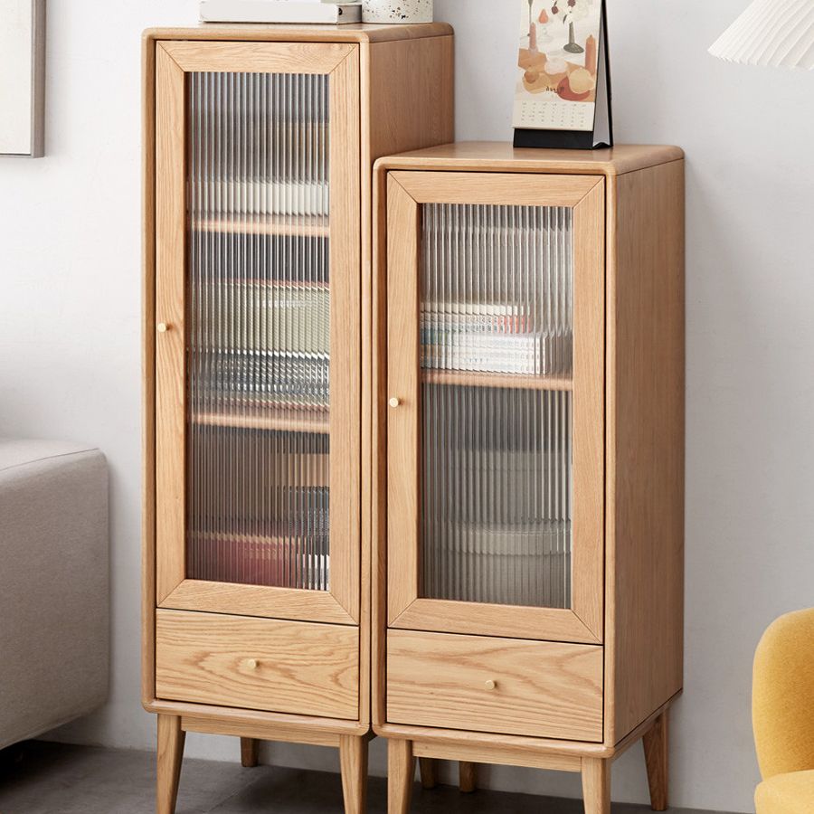 Glass Paned 1 - Drawer Solid Wood Knobs Straight Legs Accent Cabinet