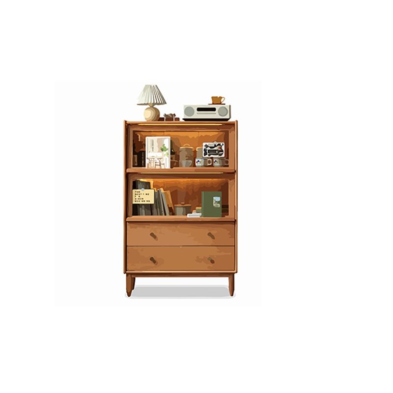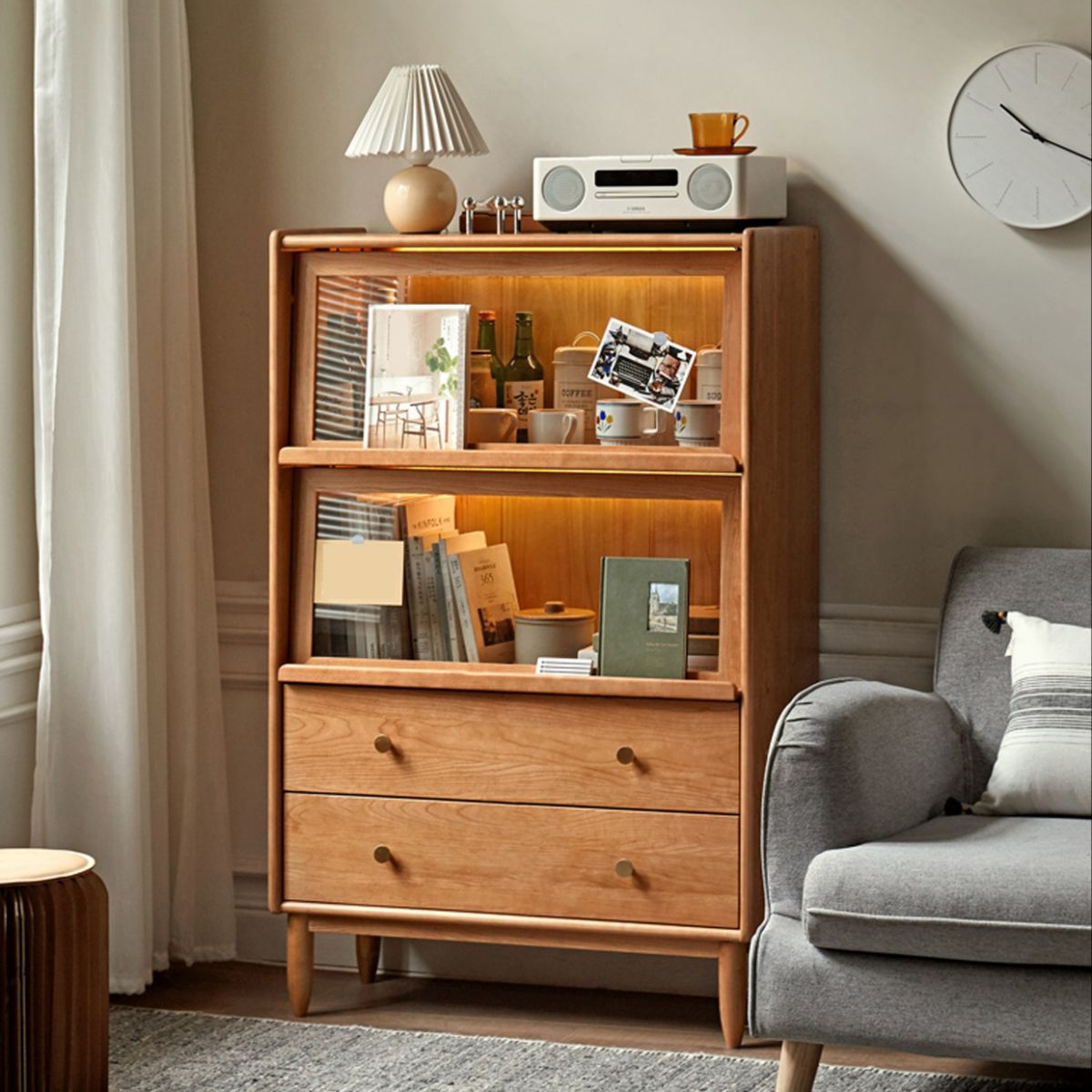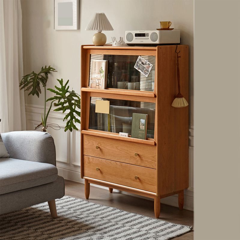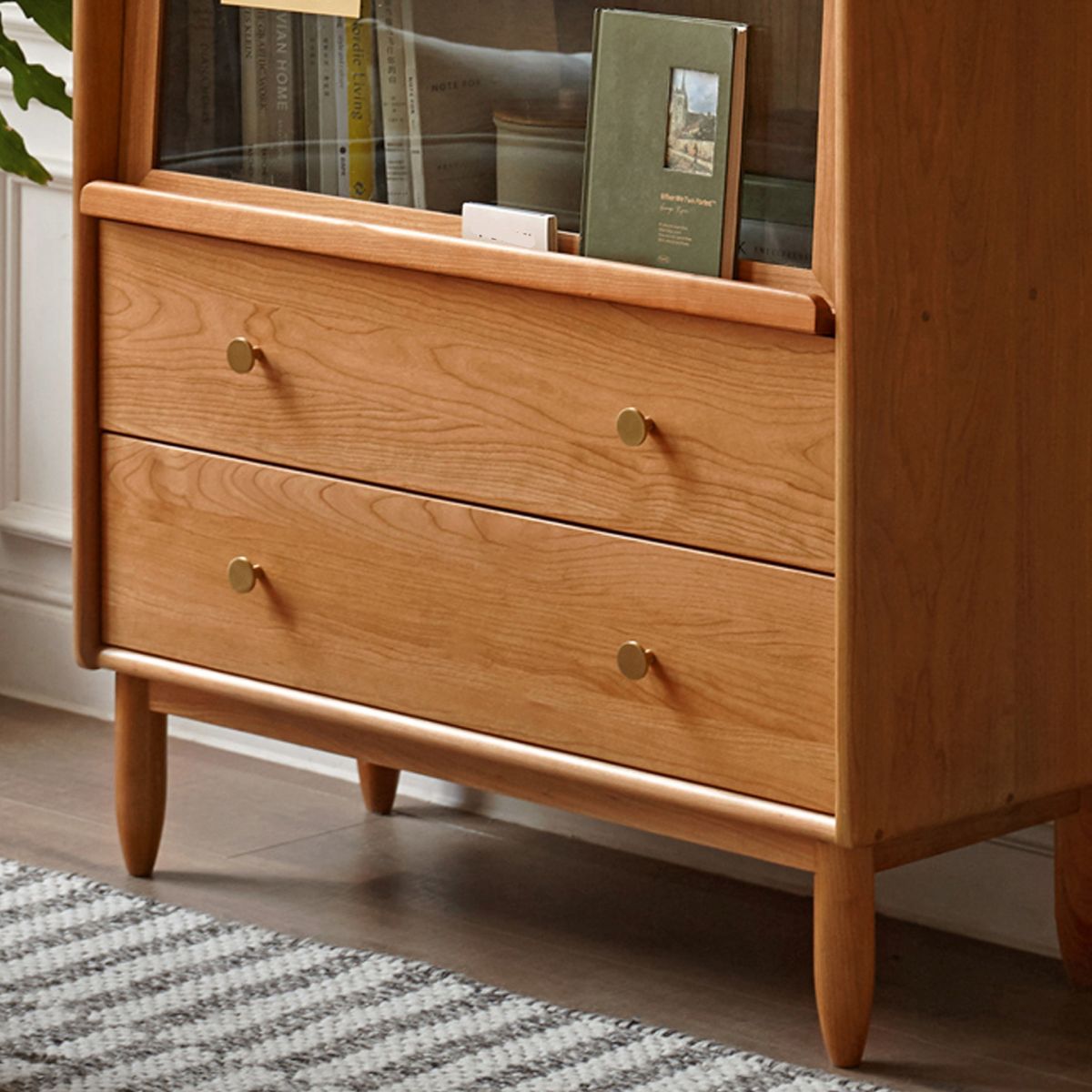 Glass Paned 2 Door Contemporary Solid Wood Accent Cabinet for Home
