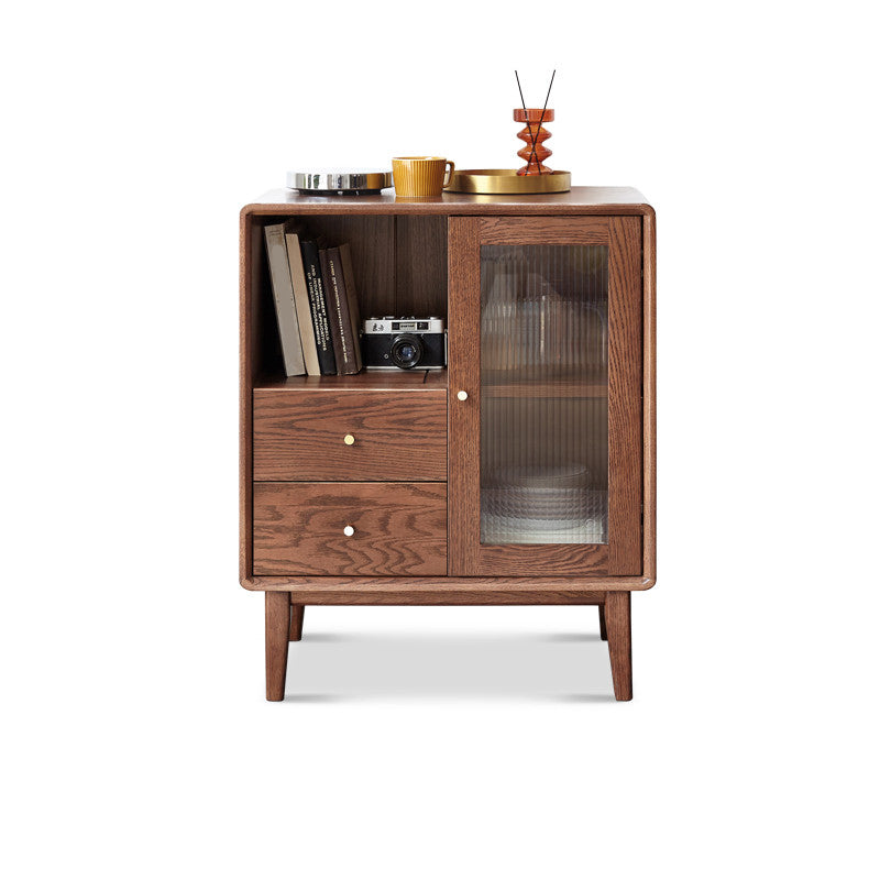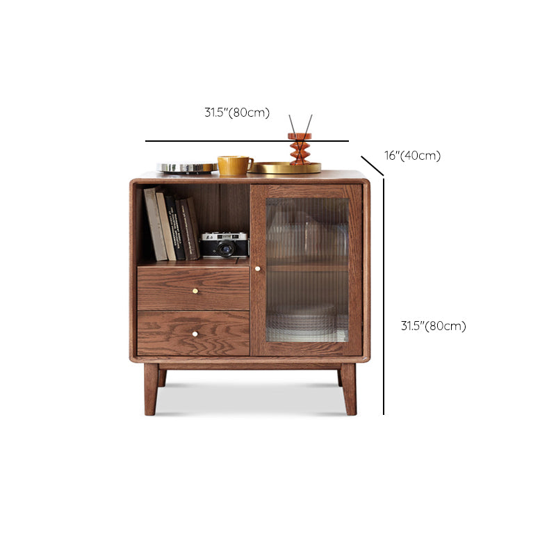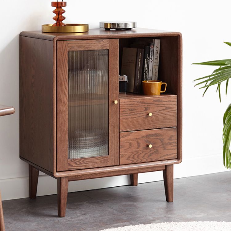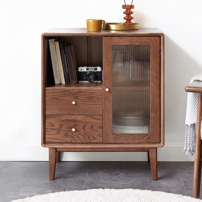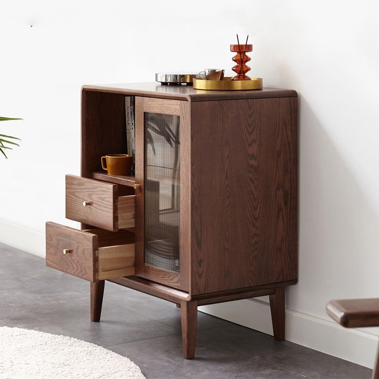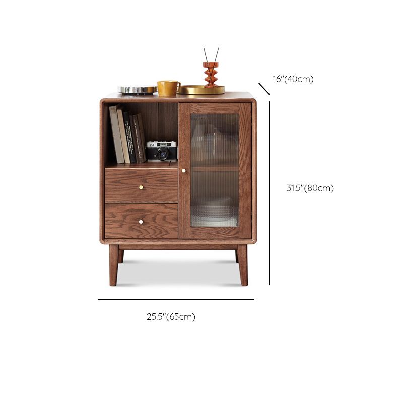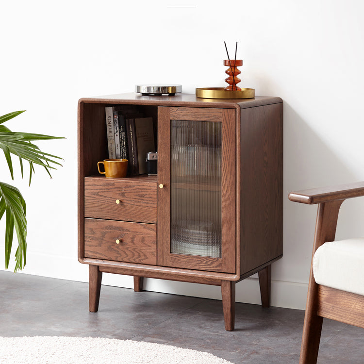 Glass Paned Living Room Solid Wood Standard Accent Cabinet with Shelves