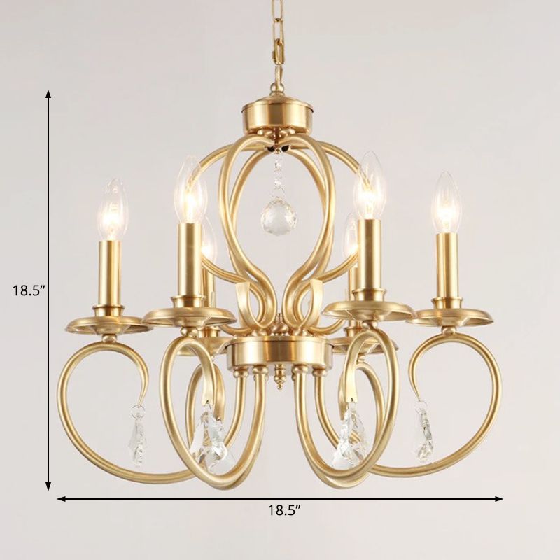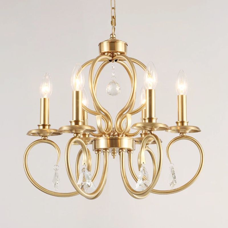 Gold Candle Chandelier Lighting Nordic Metal 6/8 Bulbs Hanging Ceiling Light with Curved Arm